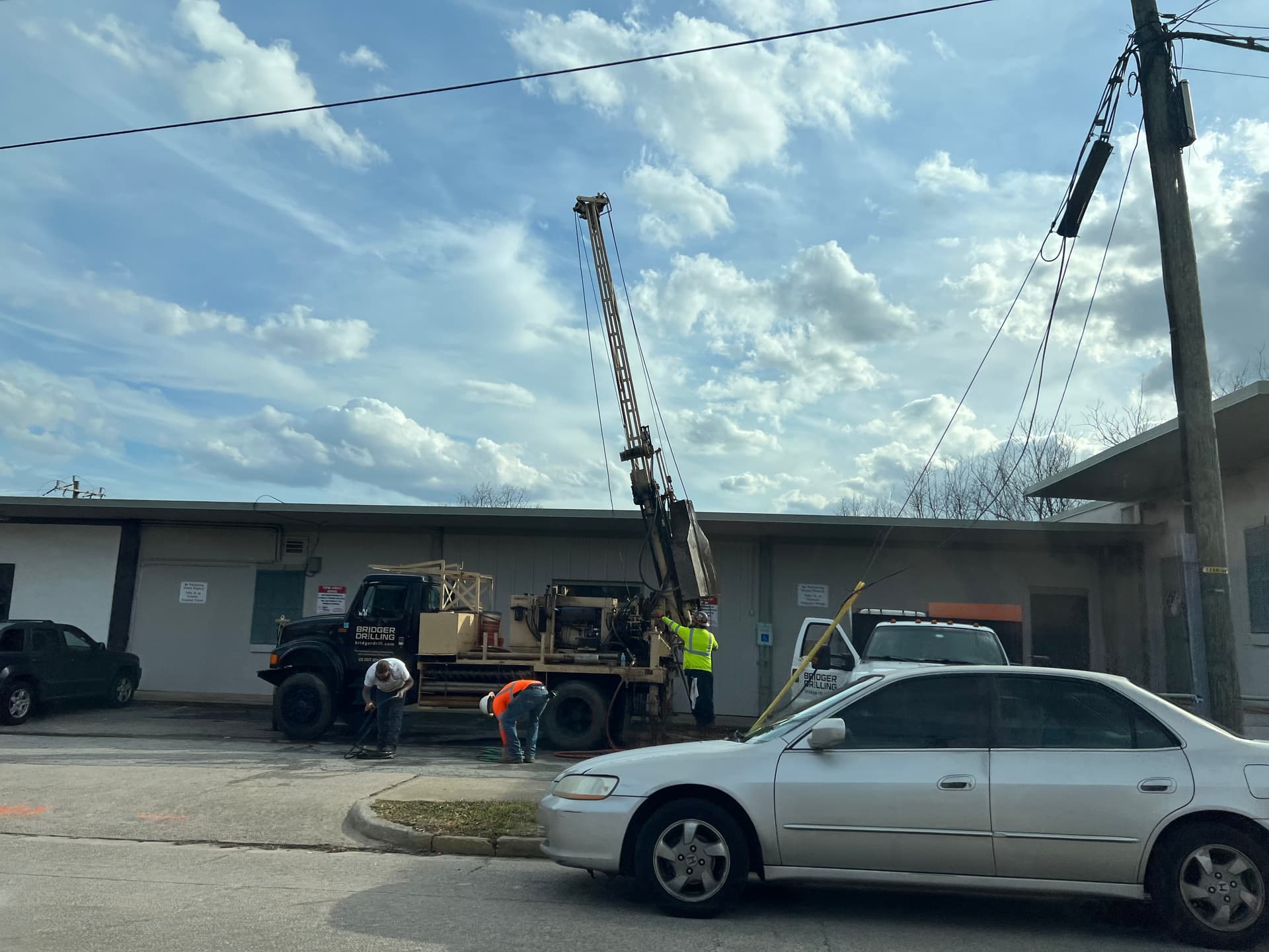Theyâre drilling in the parking lot south of the building today.