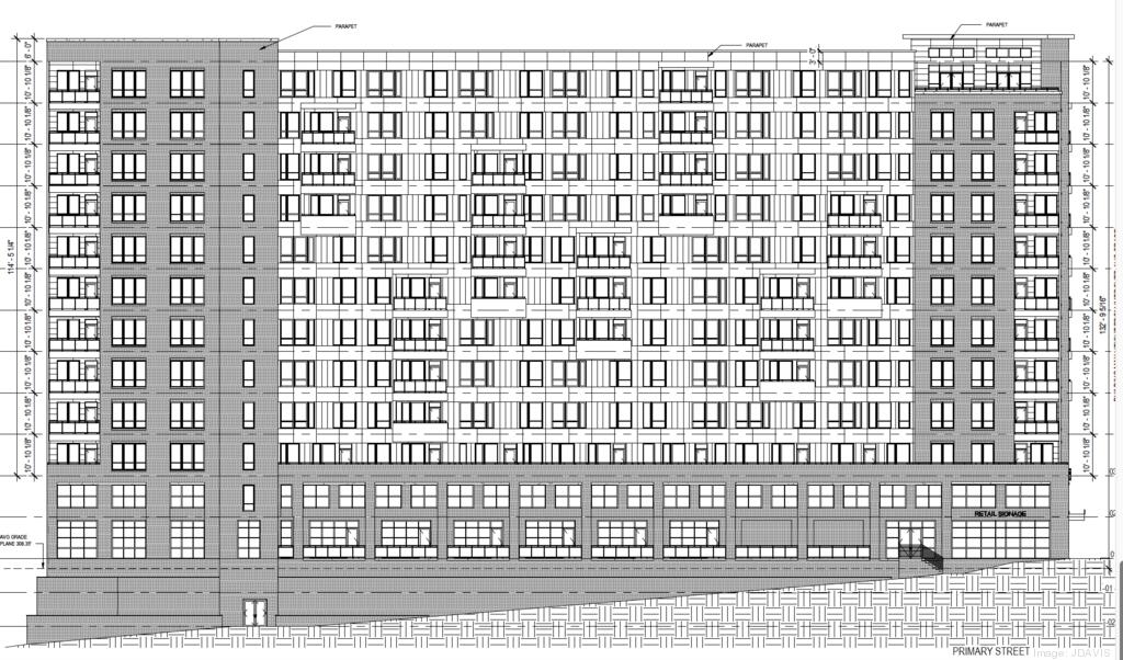 JDavis Architects of Raleigh drew the plans for what is being called Cabarrus & Dawson Residences. The 1.18-acre property is zoned for downtown mixed-use with up to 12 stories – and the full 12 stories is what the plans show.