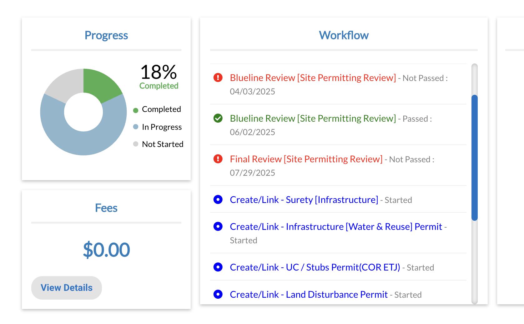 It looks like the final Site Permit Review didn’t pass (on 7/29) and a new final review date isn’t listed yet.