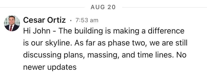 Messaged the Senior project manager about Phase 2 last month. Didn’t get much info back…I feel like it’s going to be put on hold for awhile.