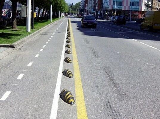 Iâve heard them called armadillos. They replaced the flexible upright bollards in places that had them.