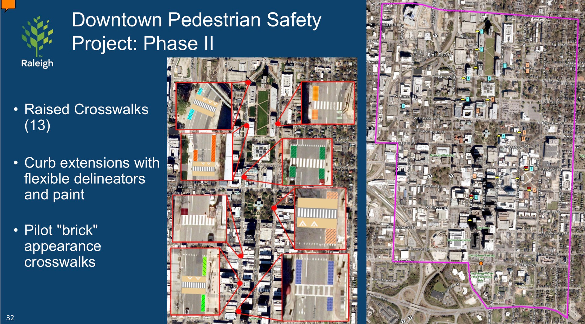 Project to add concrete buffers to West and Harrington St bike lanes, along with intersection improvements to Peace/West and Peace/Harrington.