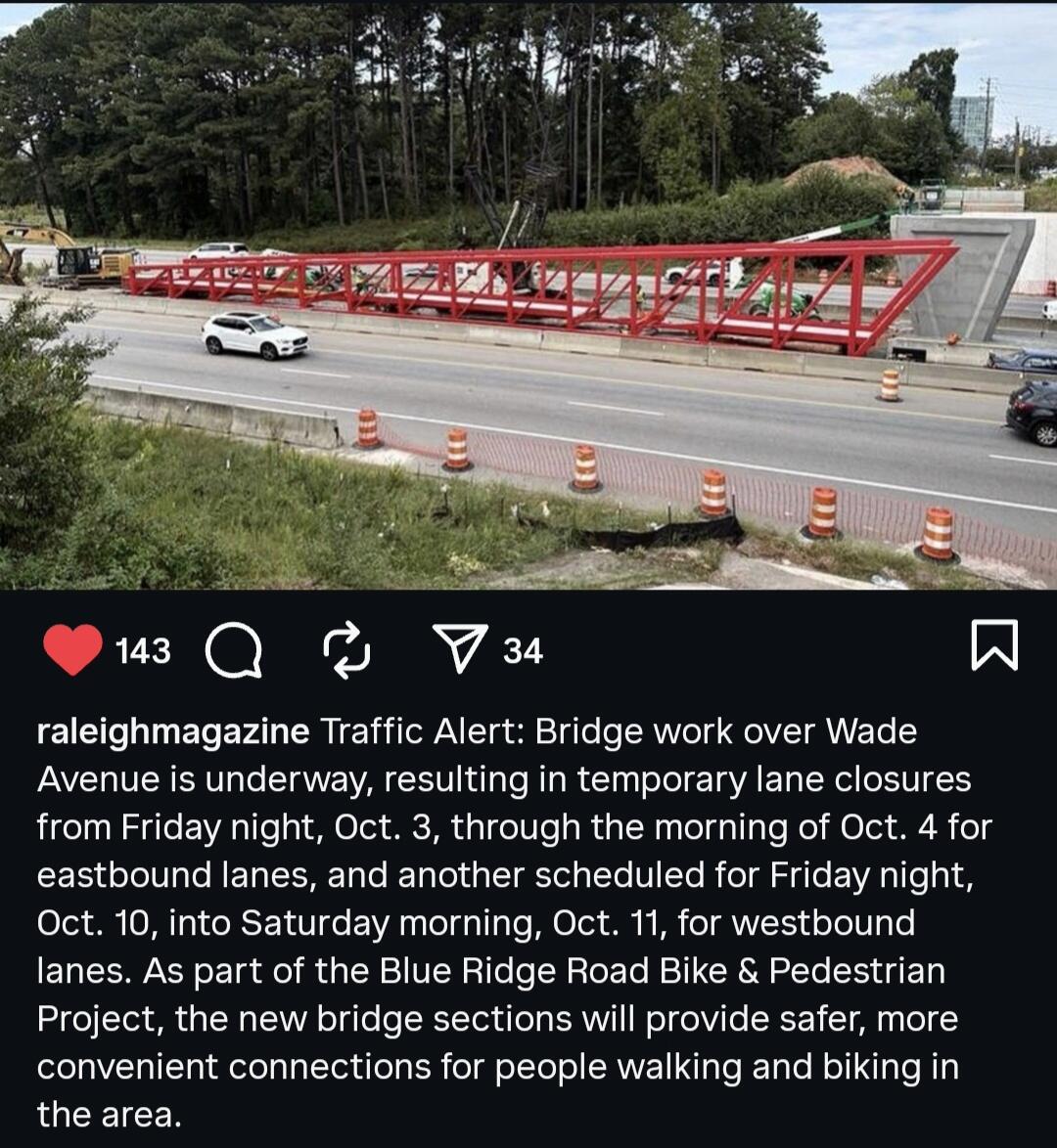 Looks like the Ligon St bridge over 440 is almost done. Together with the Blue Ridge projects, it will vastly improve bike and pedestrian access to the arboretum / fairgrounds/ arena district. And also help improve connectivity for Method residents. That whole neighborhood is basically hemmed in by two stroads and a highway. https://www.newsobserver.com/news/local/counties/wake-county/article296009639.html