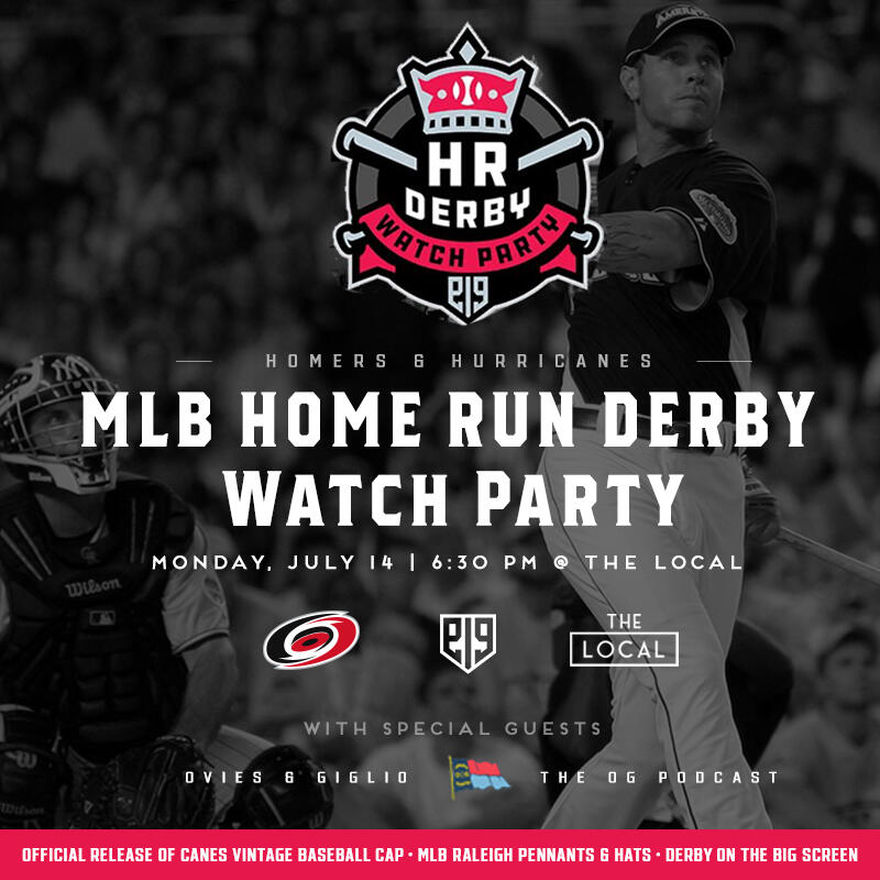 If you’ve got nothing going on Monday night, we’re partnering with the Hurricanes to do an MLB Home Run Derby watch party at ‘The Local’ (Former Backyard Bistro near Lenovo Center)