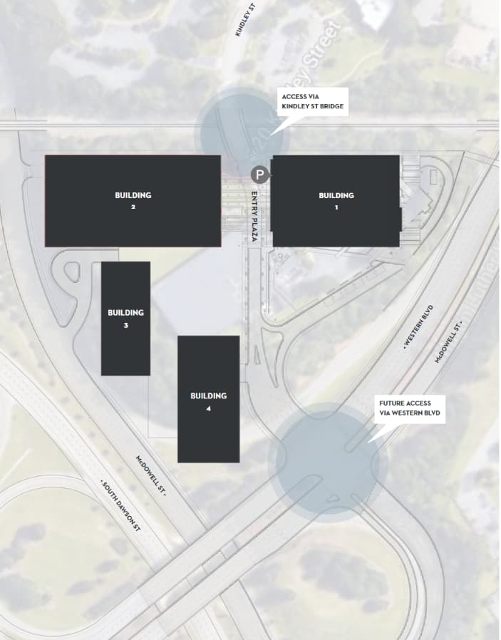 Although this was from before the switch from 10-story office to 6-story residential for building #1, I wonder if this is still roughly the plan for the rest of the site.