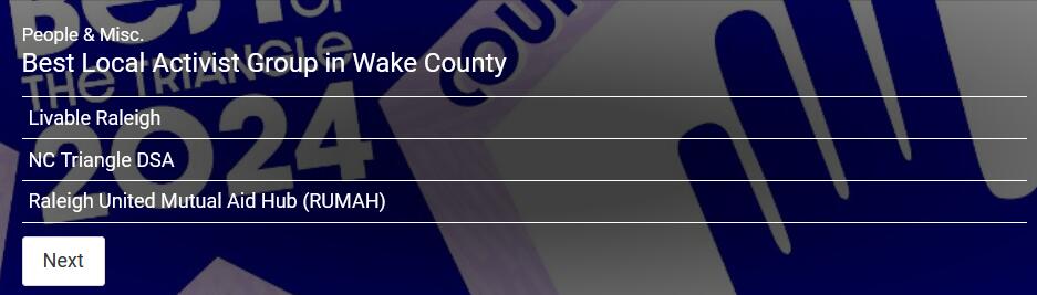 To me, that’s the scene right now as far as groups involved in the “Raleigh Urban Conversation”.