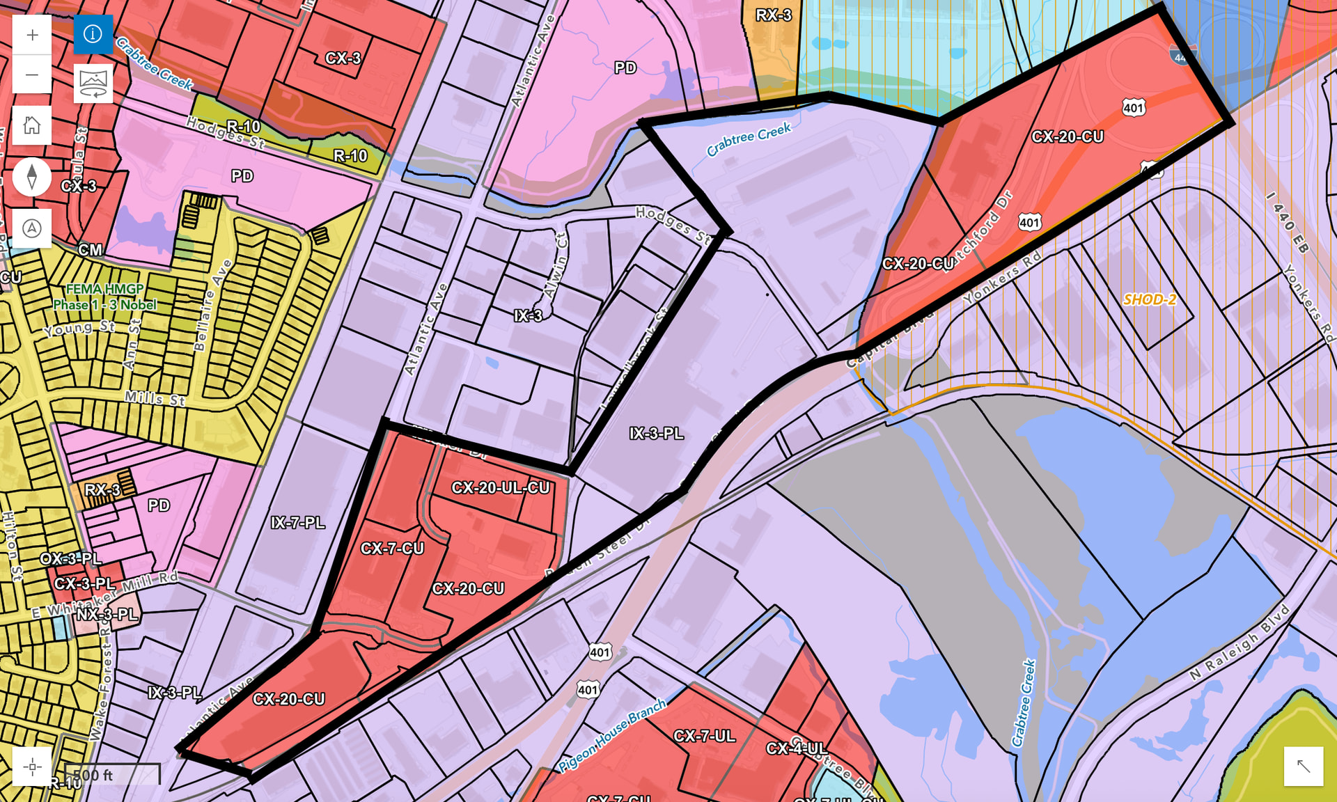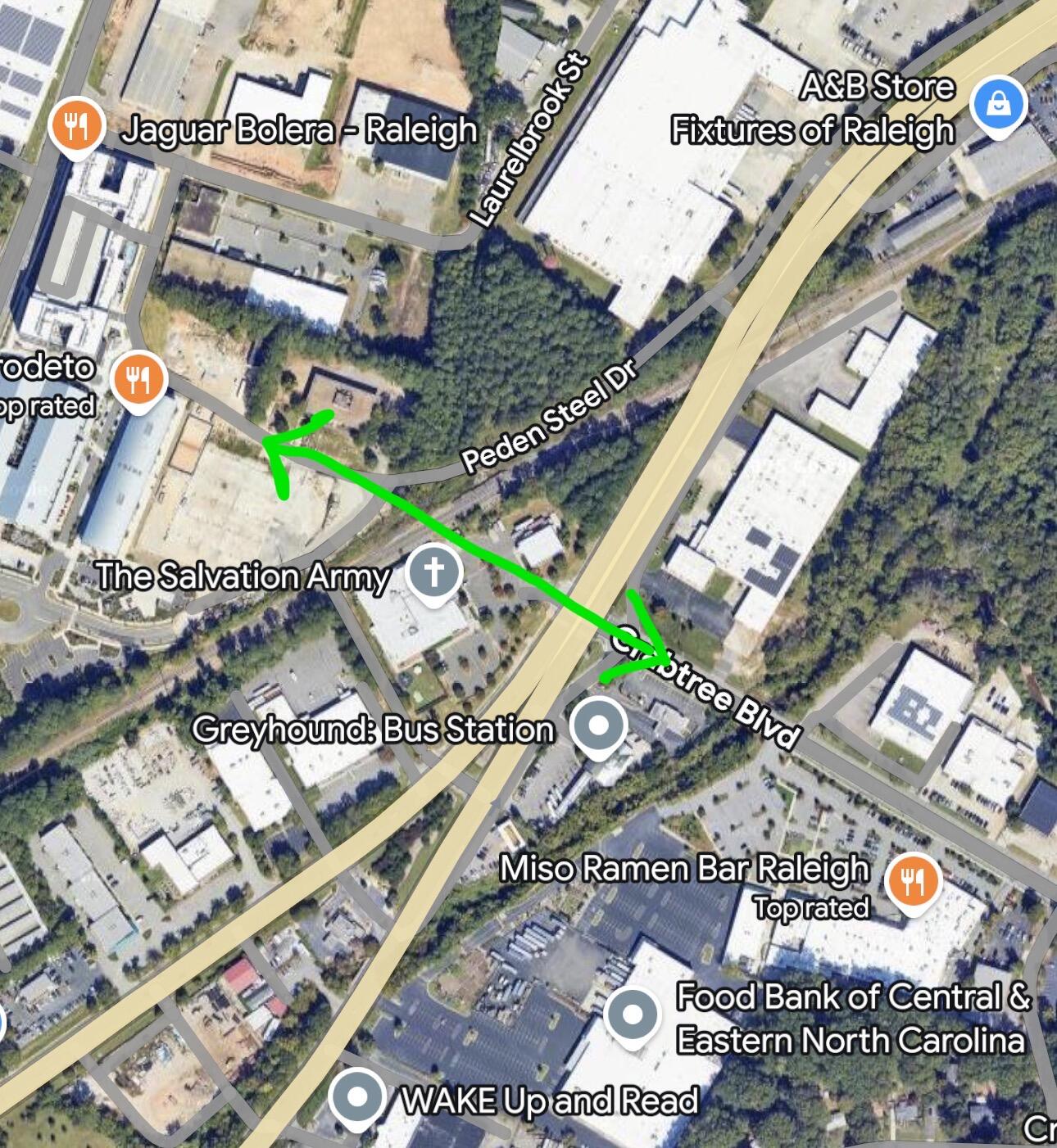 The more obtainable bike/pedestrian access from the Crabtree Blvd. intersection with Capital Blvd. would be the improvement of the apparently abandoned R/W corridor to the south of the intersection now owned by RIW 2 LP (the same listed owner of Ironworks).