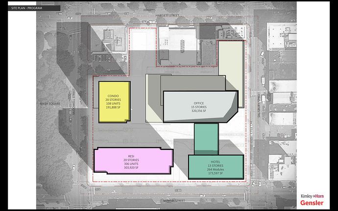 I agree on the office phase. Very curious about the other “three” towers for condos, hotel, and apartments. I count roughly 220 hotel rooms in the massing model but am also confused how the building backs up to the condo building.