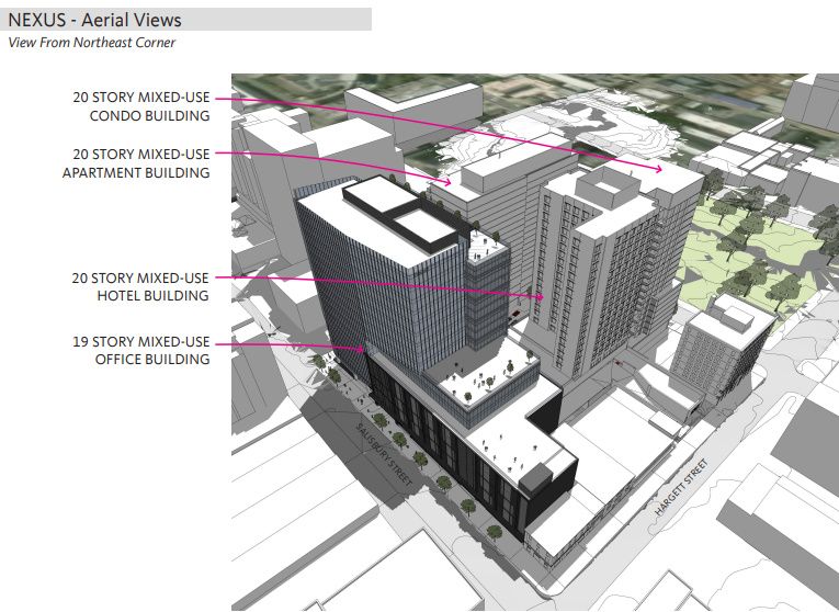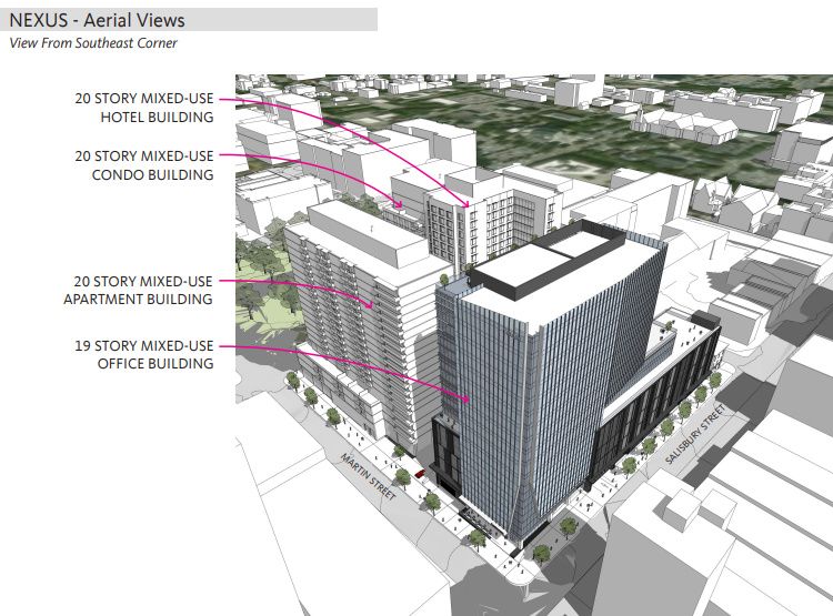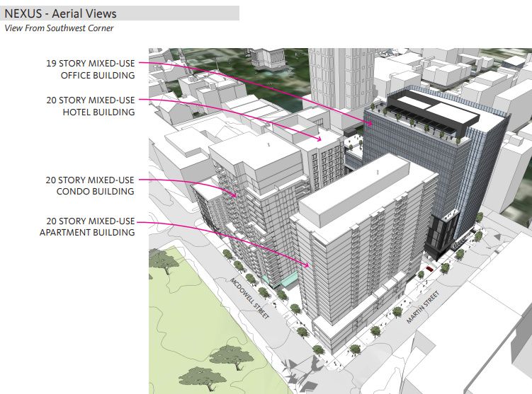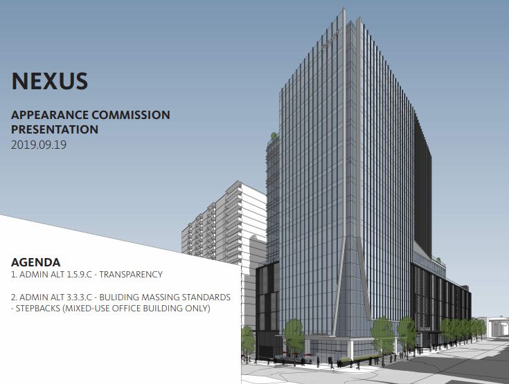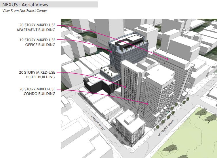Looks like the AAD for Nexus just hit the Wire Service Feed. Lots of great renderings. Looking good. It also mentioned underground parking (under apartments/condos/hotel portion) Still has a big parking podium under the office section.
