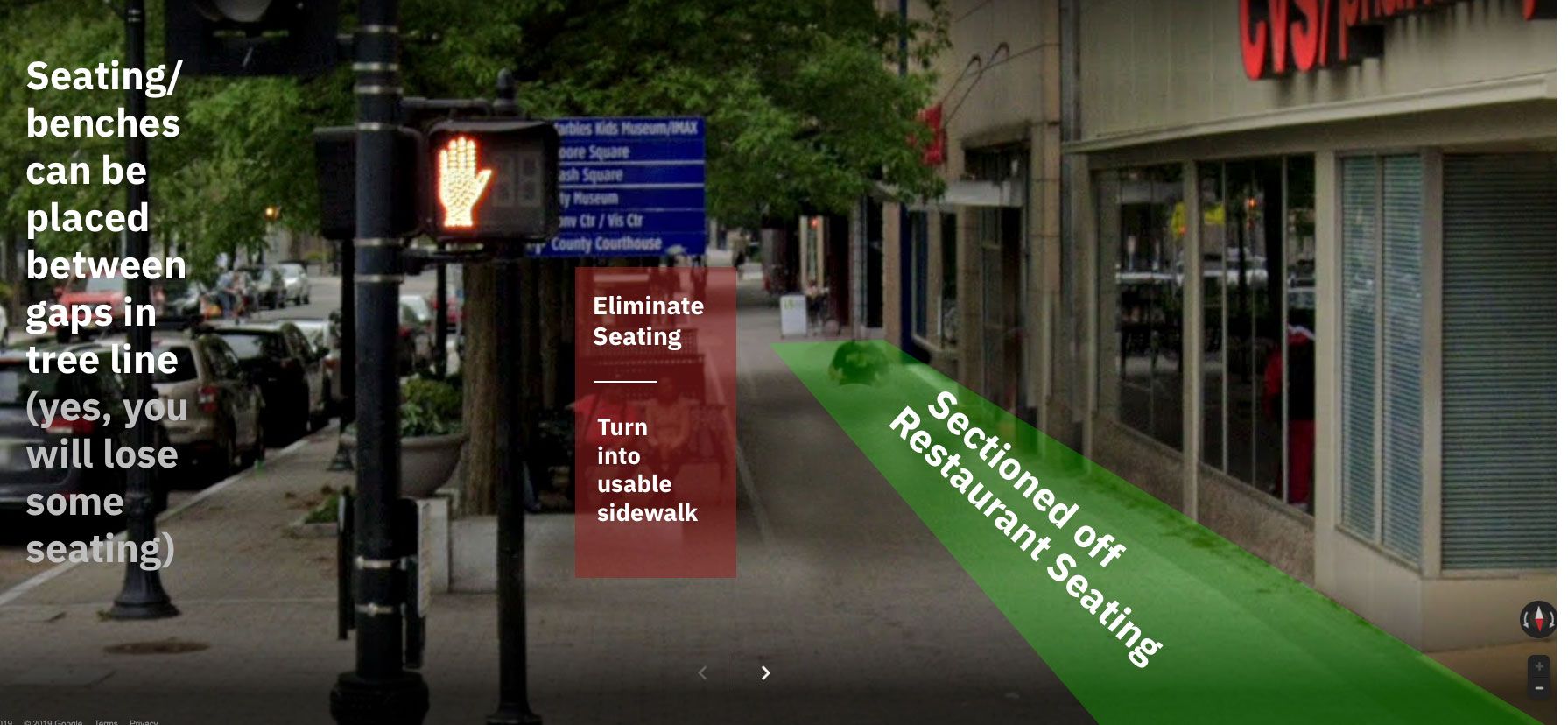 Bc of how we have the sidewalks laid out (w/ the benching and platings) there really is no room to pull off what NYC and most cities are doing with mini-patios that push out into the sidewalk, but are sectioned off.