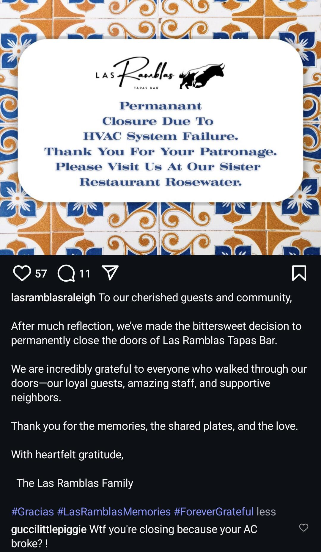As far as Las Ramblas goes, seems it was in fact a deathknell to the budget and certainly interesting considering the depth of restaurant concepts (and theoretical financial backing) in play for GHG. Still, HVAC $$ ridiculously crazy right now, iykyk