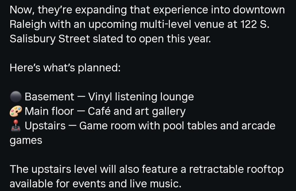 really excited for this if executed properly. There is an entertainment gap in raleigh for weekend afternoon live music and hope they focus on that
