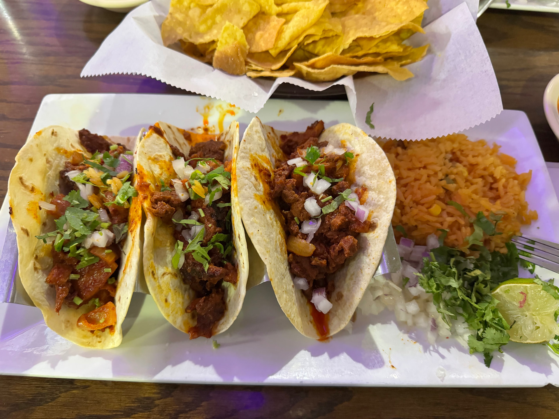 Edit on El Rodeo. I went there last Tuesday for Taco Tuesday and got 3 huge tacos for $9.99. It came with a side of rice and, of course, free chips and salsa. The photo looks normal, but they really were quite large.