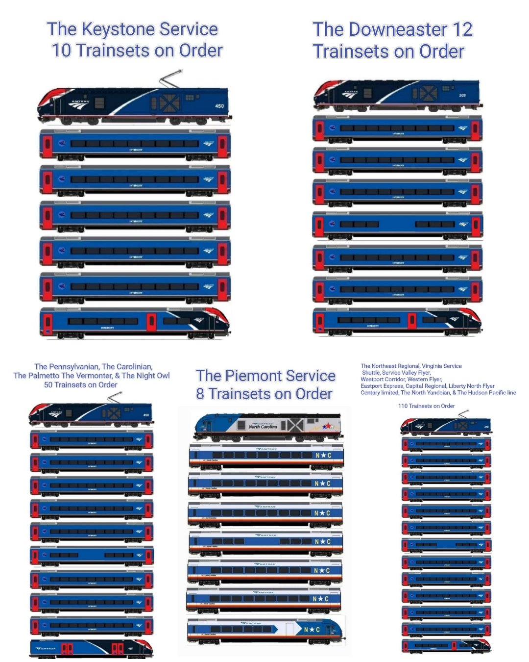 Type C will be used on Empire Service, Ethan Allen Express, Adirondack, and Maple Leaf services.