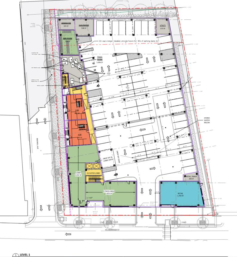 Replacing a seedy strip mall, its parking lot, and an auto repair shop, with a mixed use complex, is nice in concept, but when the execution involves trading out three retail spaces for one, plus a parking garage entrance and a āfitness areaā, thatās maybe not great for the street on the whole. Perhaps this is just a correction for the glut of retail space on Hillsborough that struggles to stay leased, but still, it would seem like a place like this right across from Dan Allen would be a pretty good spot for it.