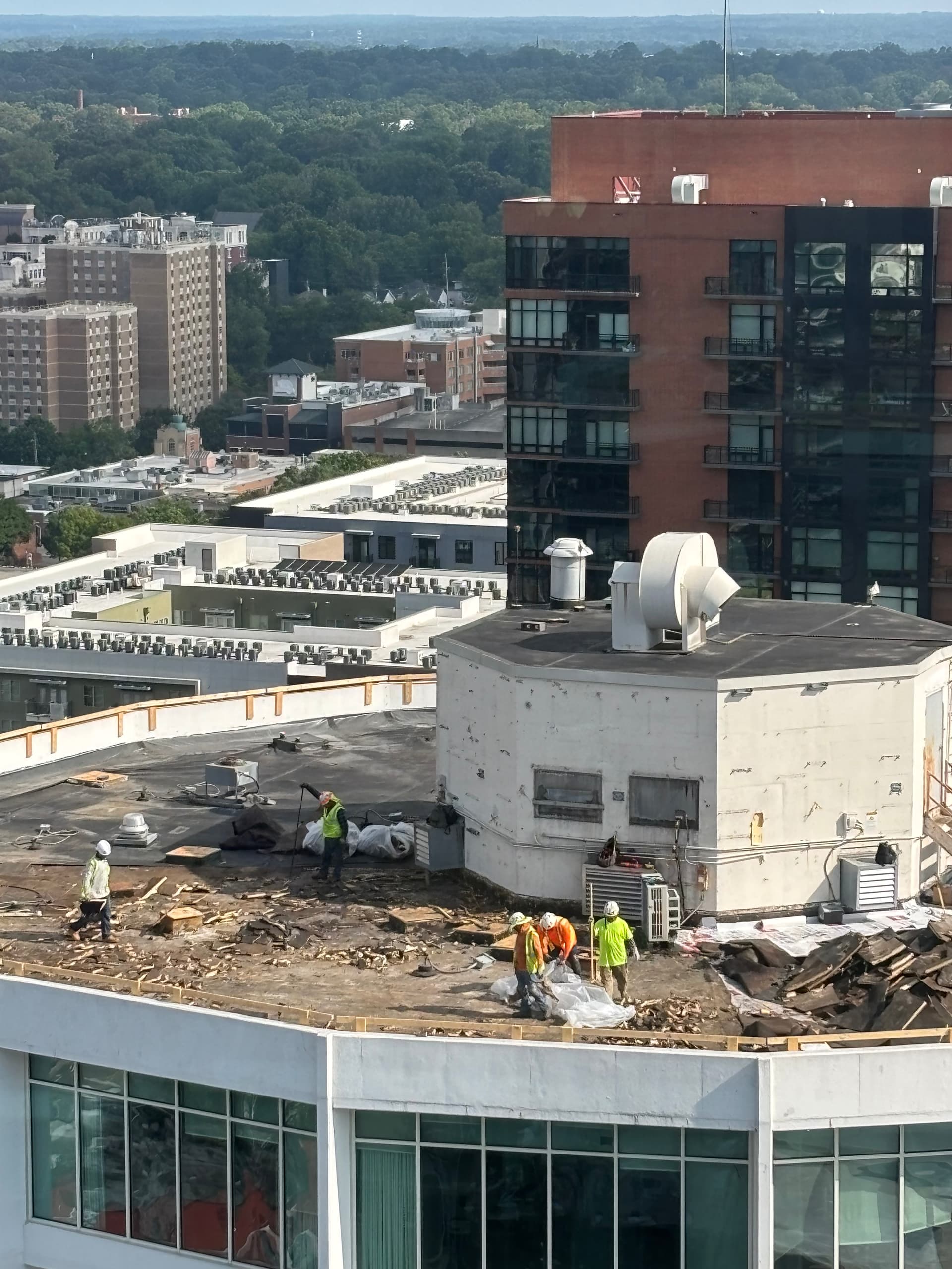 They are likely installing new elevators as part of the major retrofit, and the building core with stair access already extends to the rooftop. If a modern trackless MRL (machine room-less) elevator is selected, it could enable rooftop access and allow the hotel to offer a rooftop amenity comparable to other downtown Raleigh hotels like Hyatt’s High Rail, Tempo’s Urban Oak, and The Willard AC’s rooftop bar.