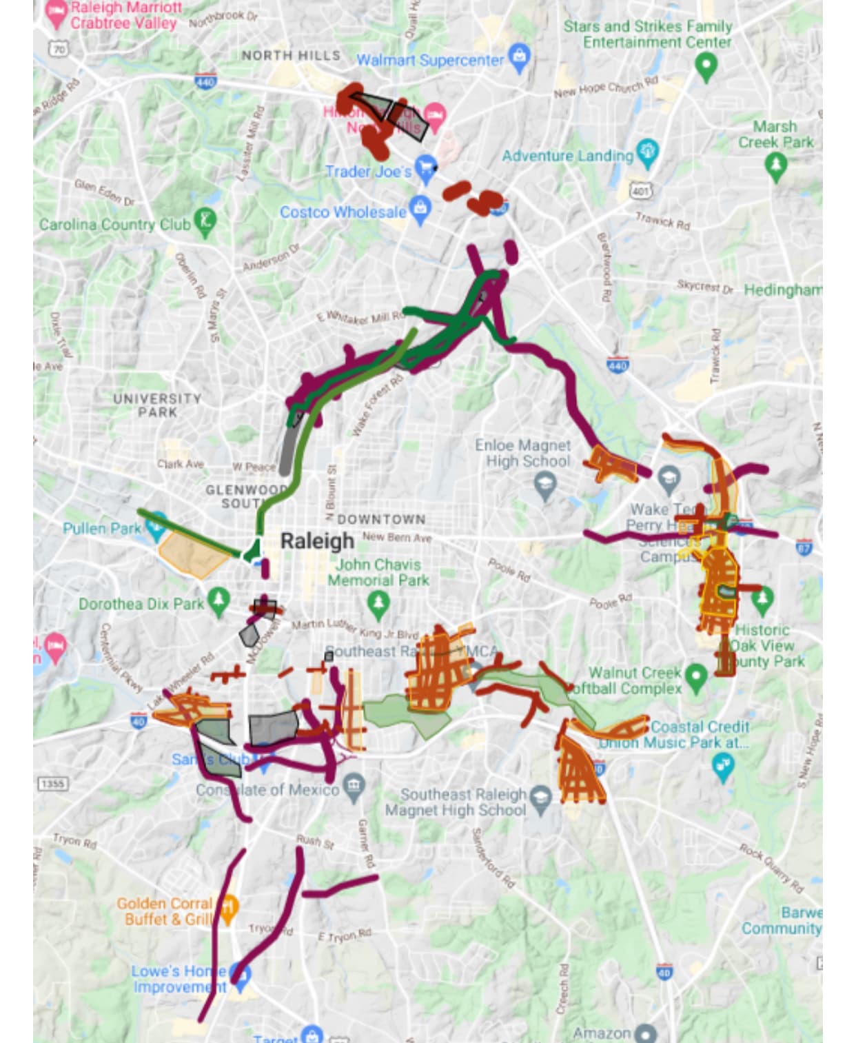 I definitely encourage you to keep going with these ideas. Corey Branch is your city councilor for the area so maybe he’s the person to start with. I know the state will howl about what to do with the prison, but… there’s a lot of empty land and buildings down at the old Cherry Farm in Goldsboro that would be a good site for it (there’s already another prison on the grounds). The state owns plenty of property outside of Wake County and could manage to move both prisons by the end of the decade without any serious budgetary pain, they just, you know. The state legislators for the most part hate Raleigh, and hating Raleigh (because “Raleigh” means the state government, so disconnected from you, my valuable constituents whom I chose by drawing a district I wouldn’t have to compete in and who I have no particular interest in as long as you continue to vote for me to represent my, I mean your, interests to) means preventing Raleigh from developing as a city in its own right and according to its own needs and plans because that gets votes.