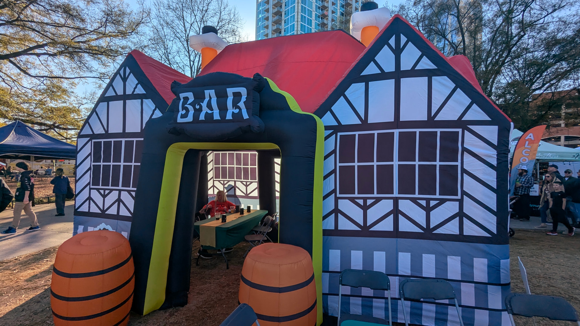 The live music is nice and some random places to hang out could be expanded. This blow up “bar” looked fun.