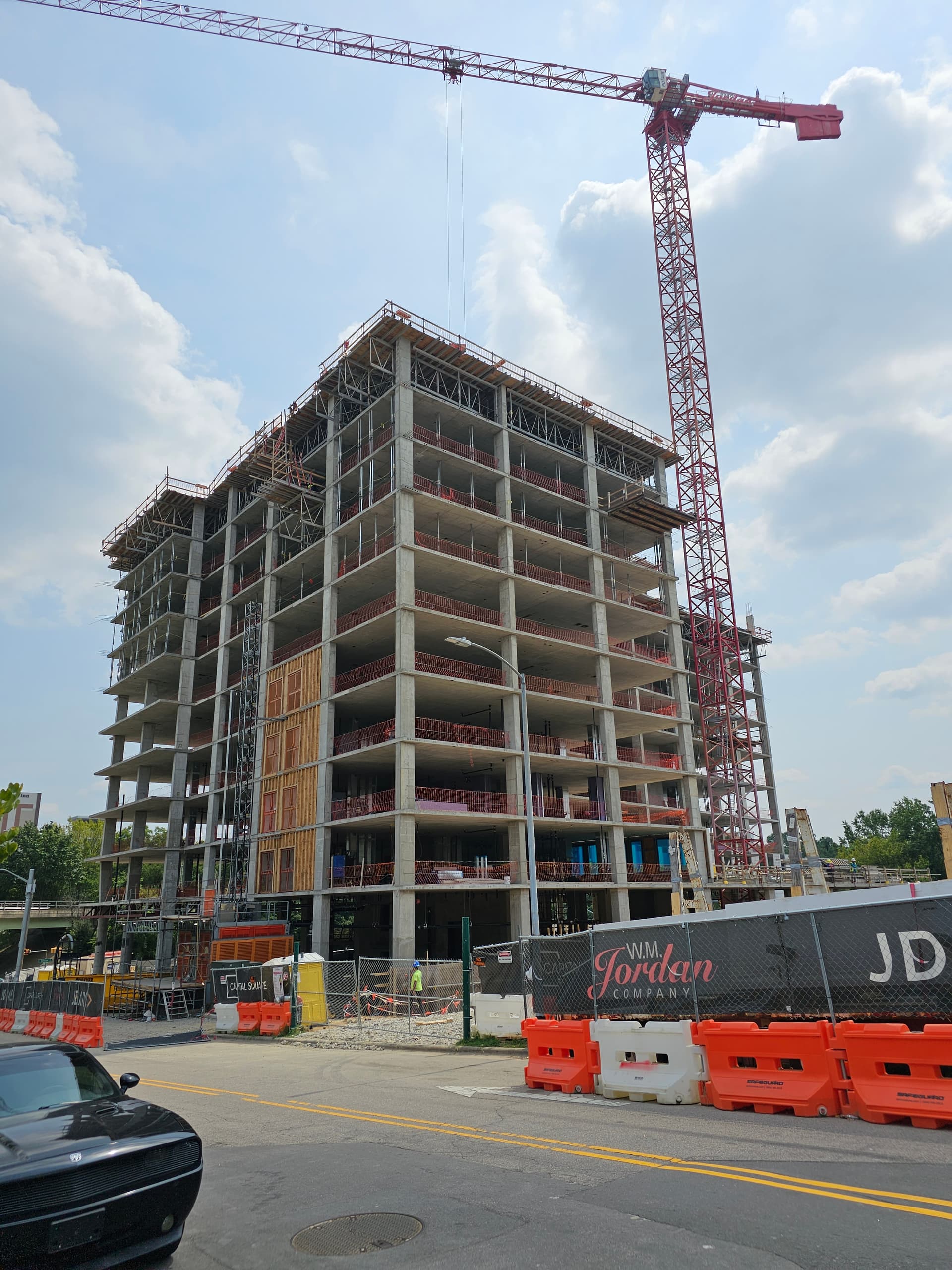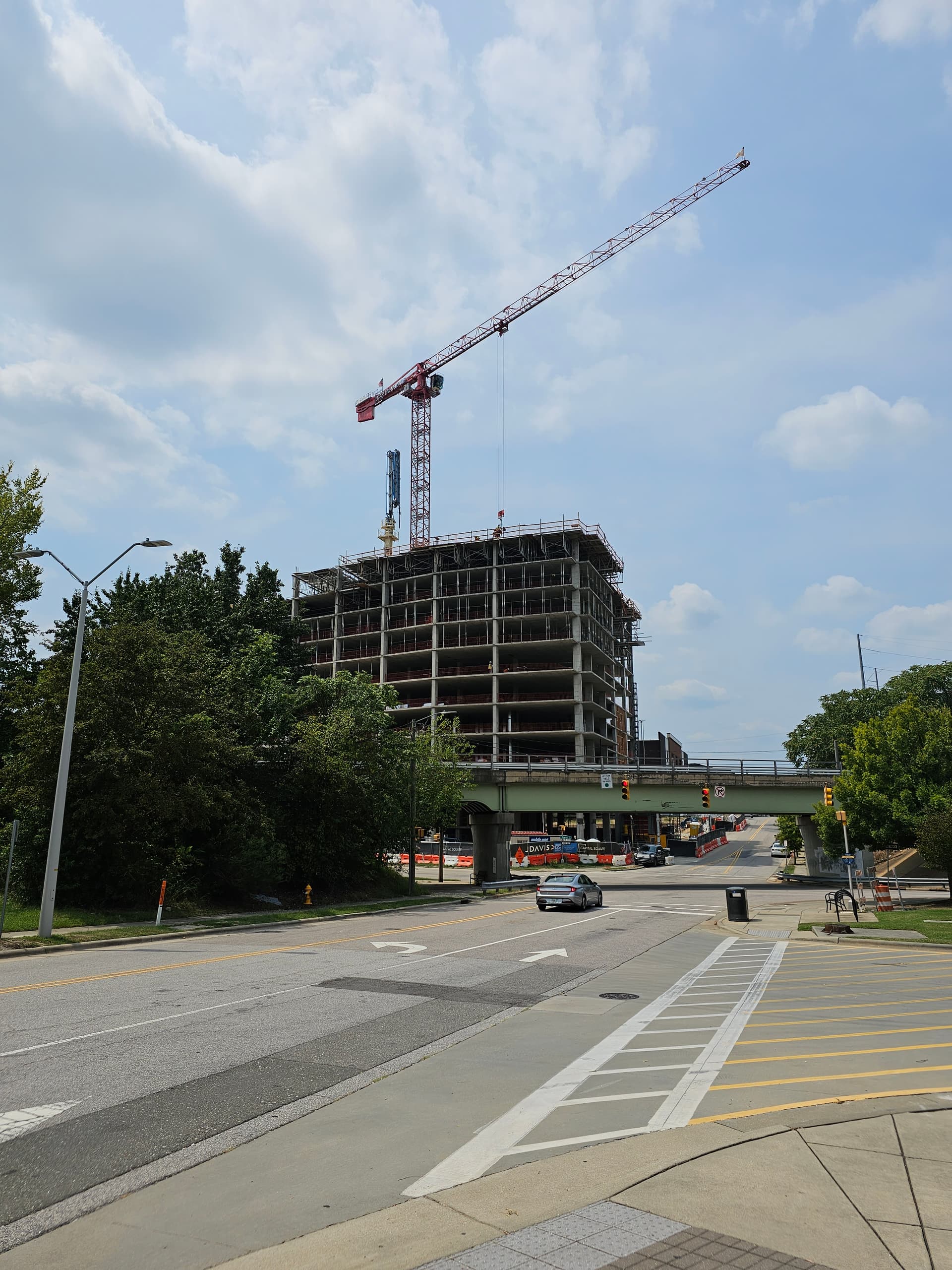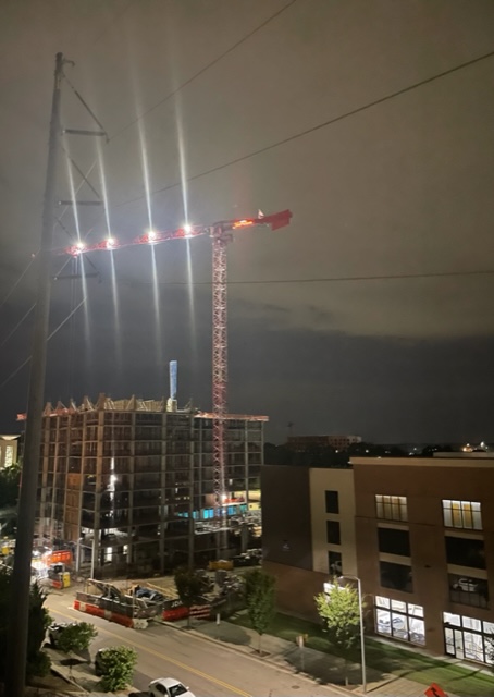 They worked well past 11 pm last night. All the lights on the crane were lit up like the 4th of July. They must have a serious deadline for getting this one finished.