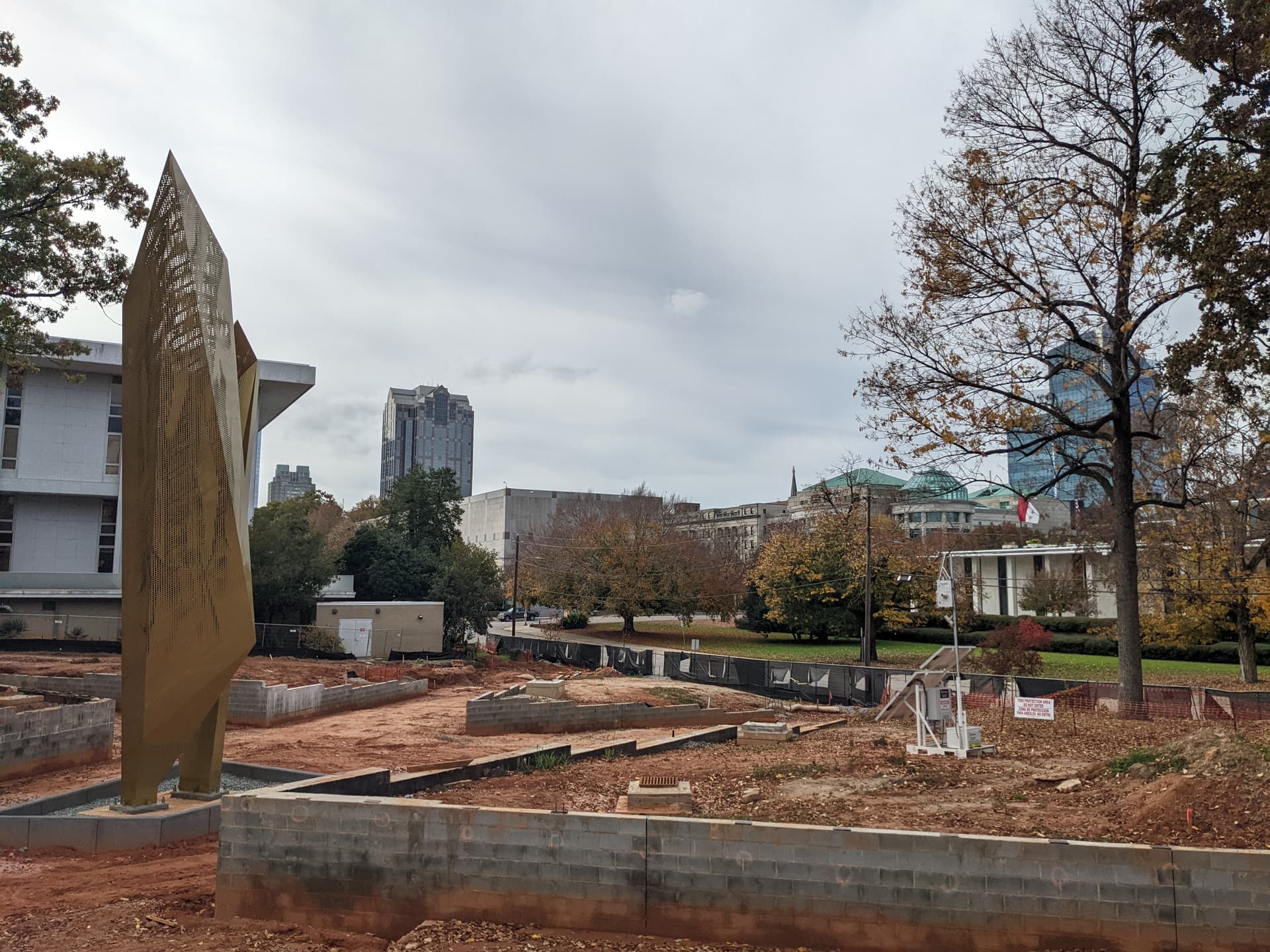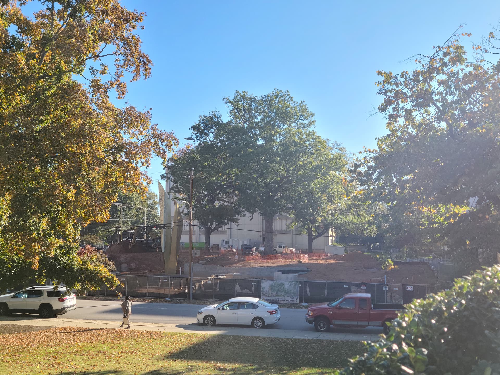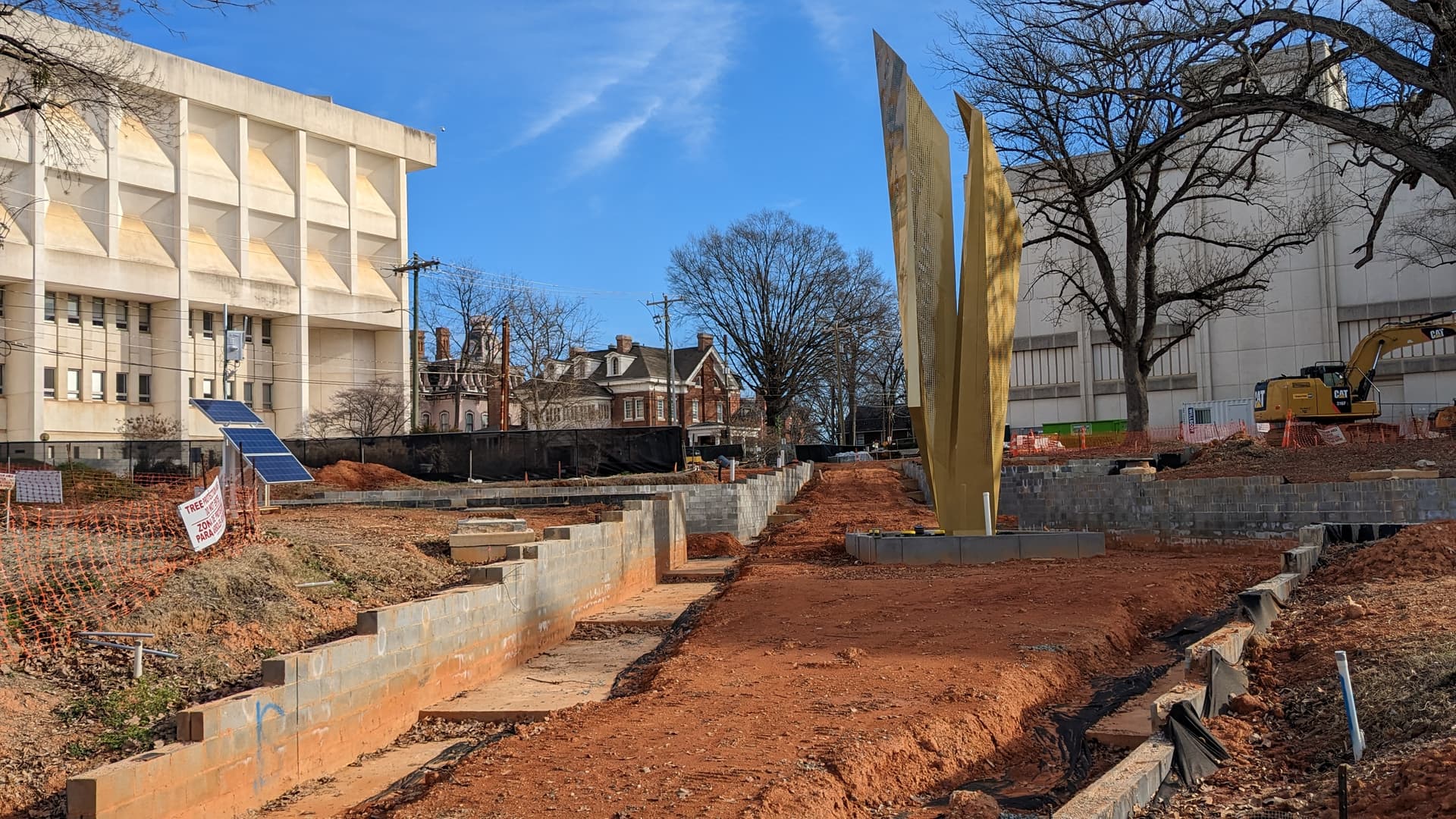 Morning sun is hell on this angle, but they’re back to digging out paths, this time on the NE side. Doesn’t look like the precast concrete is here yet, but they’re getting everything else as far as they can.