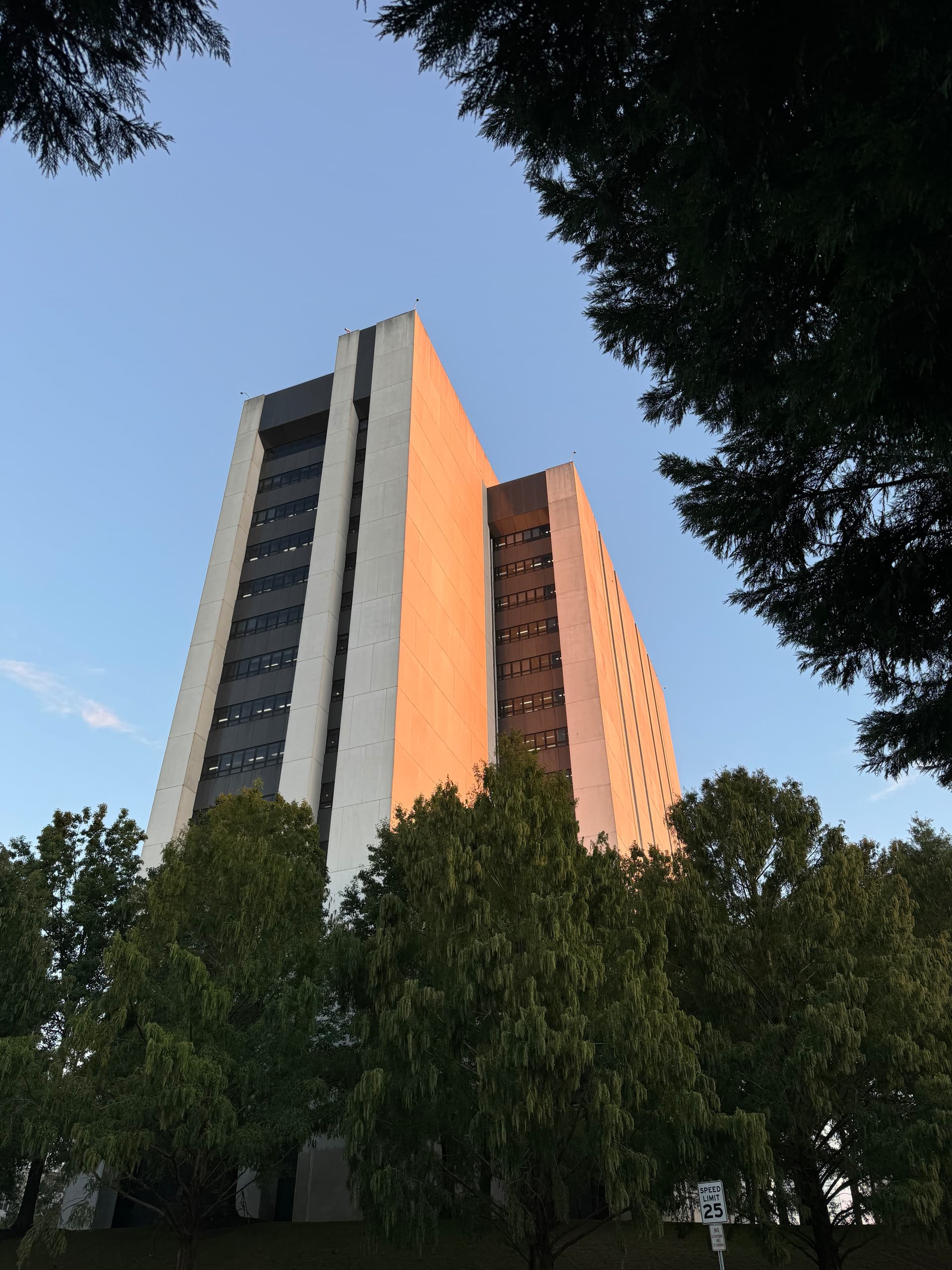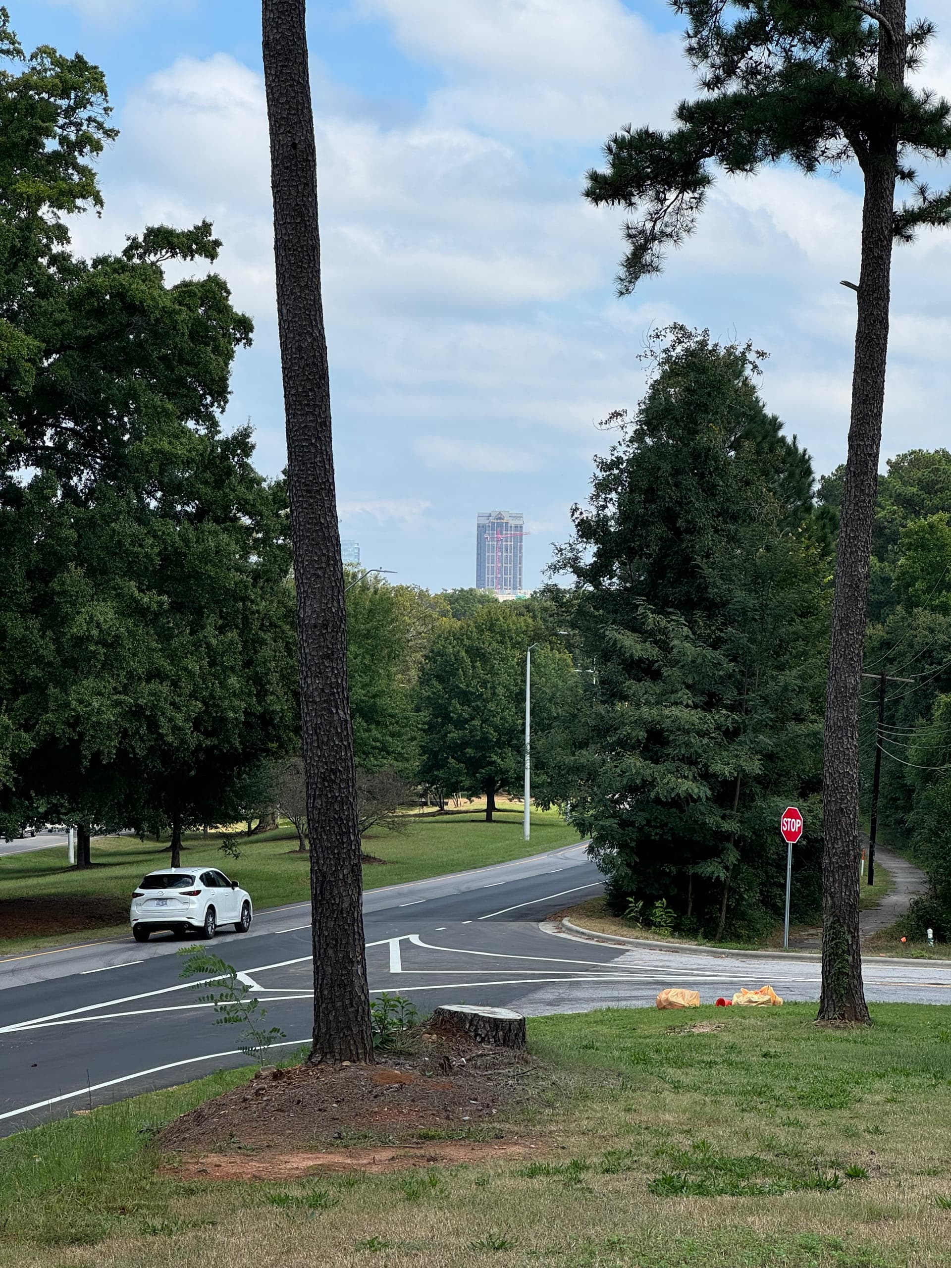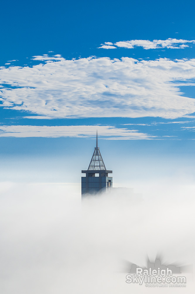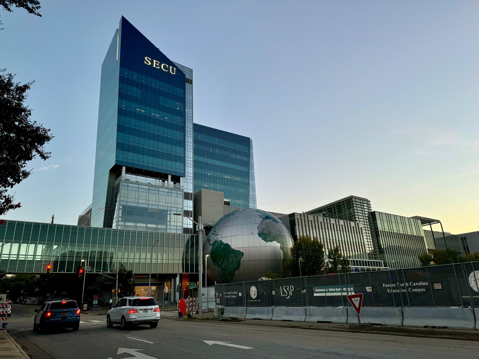 I grabbed this view of the First Union Capitol Center, I mean the Wachovia Capitol Center, I mean the Wells Fargo Capitol Center from the crest of Crusader Dr. today on my daily walk. The building has its maximum prominence from this vantage point. You practically see the entire building!