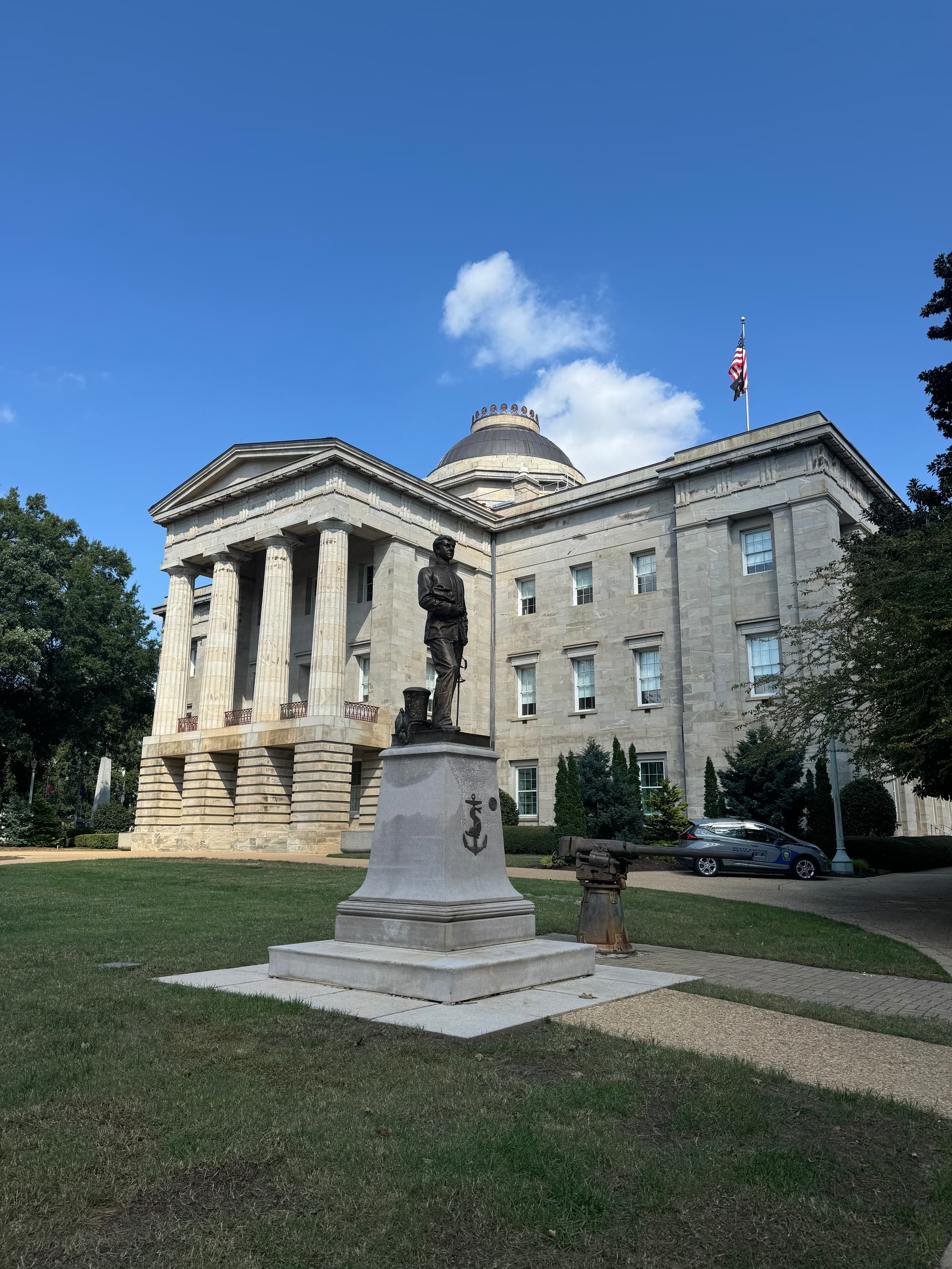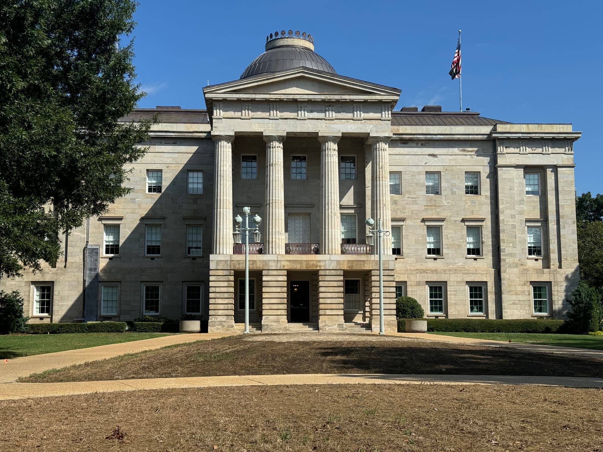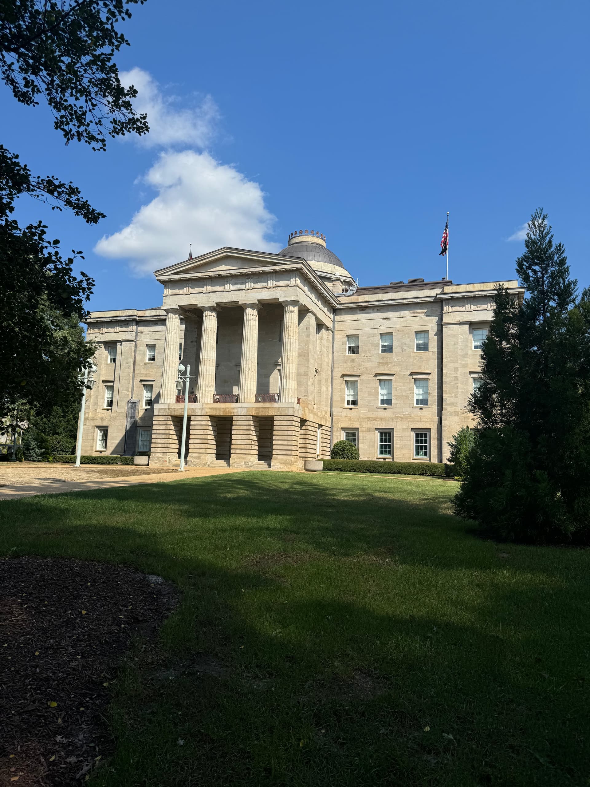 I grabbed this view of the First Union Capitol Center, I mean the Wachovia Capitol Center, I mean the Wells Fargo Capitol Center from the crest of Crusader Dr. today on my daily walk. The building has its maximum prominence from this vantage point. You practically see the entire building!