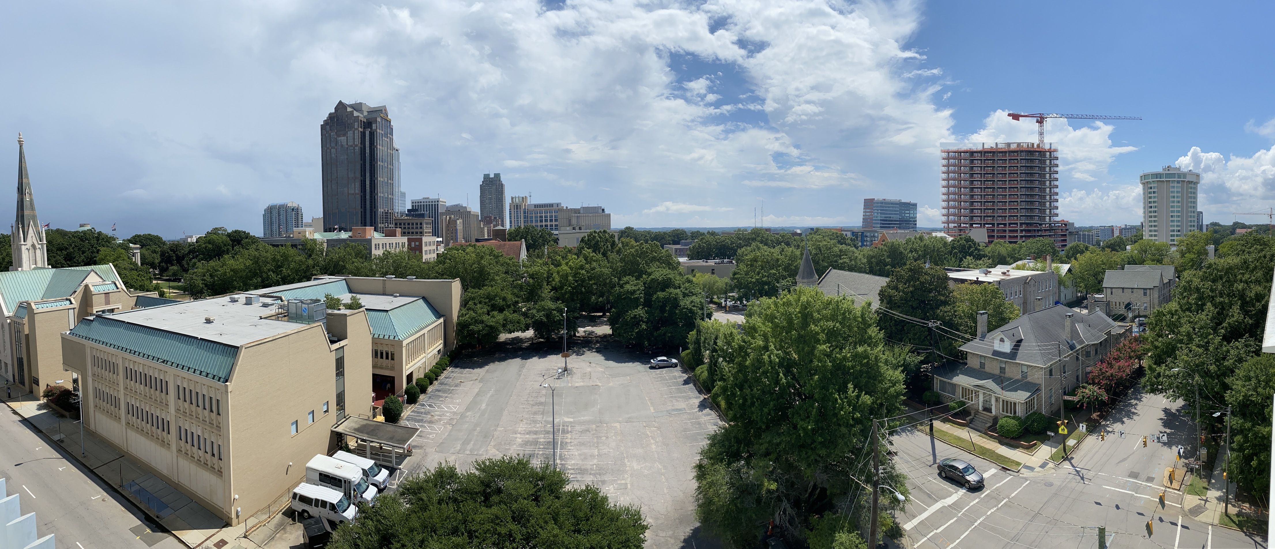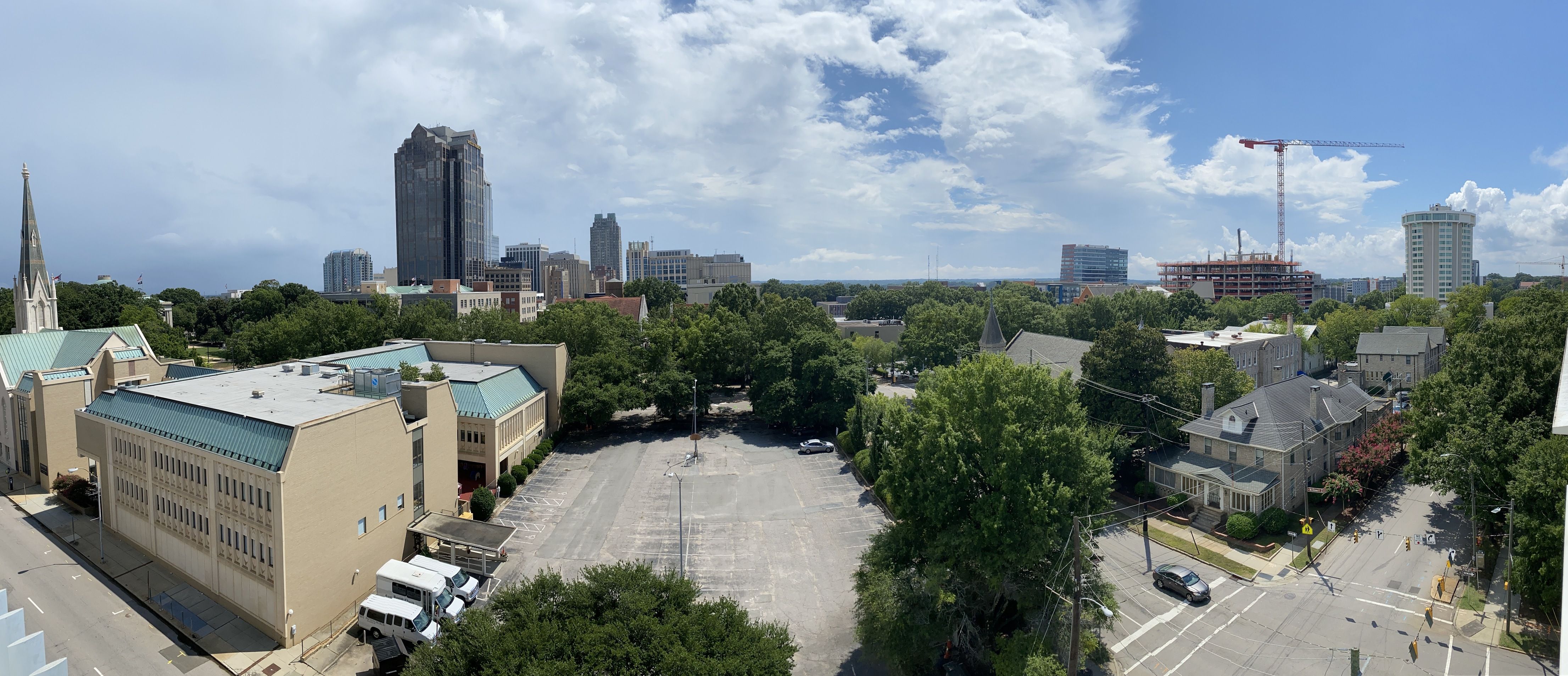 A different angle of downtown. On the right side, you can see the start of the Pendo building’s 12th floor. AC Hotel crane also makes an appearance.