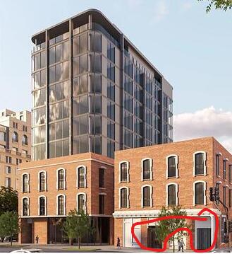 my favorite part of the renderings: the new hotel honored existing conditions of the existing hood-adjacent barred doors and windows in the existing Masonic building. Historic Preservation and all that… LOL