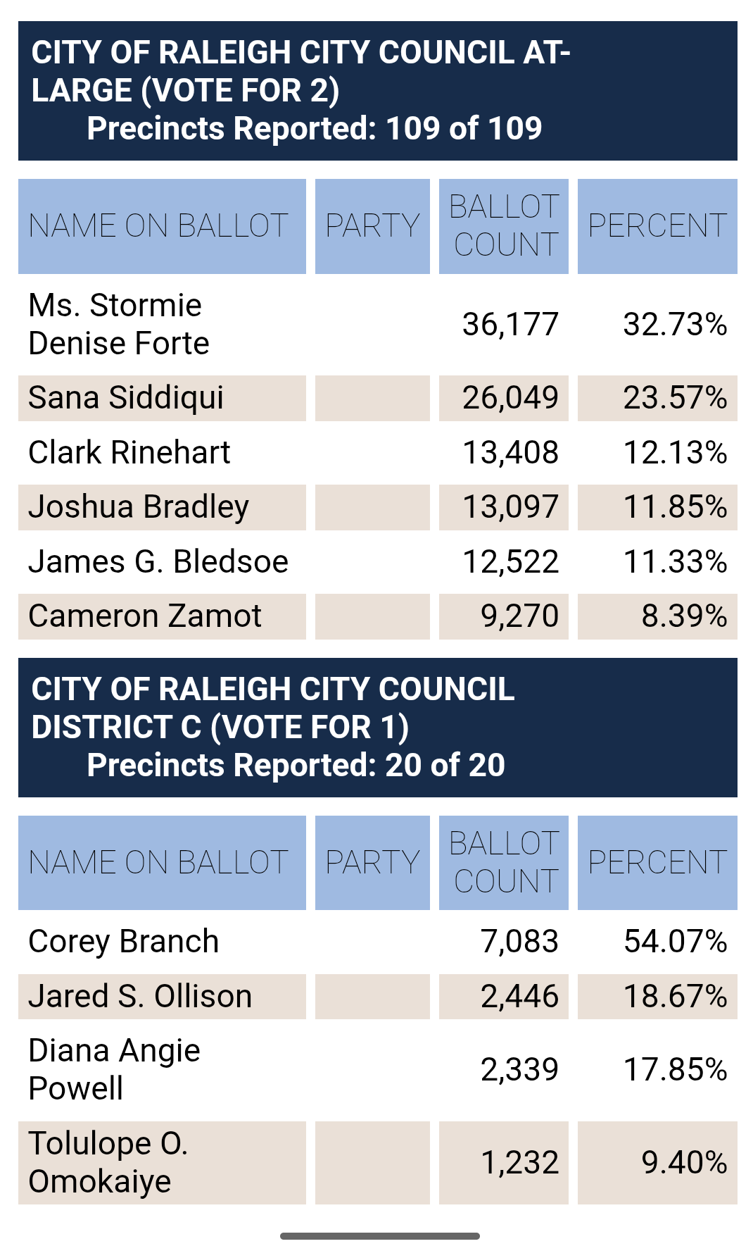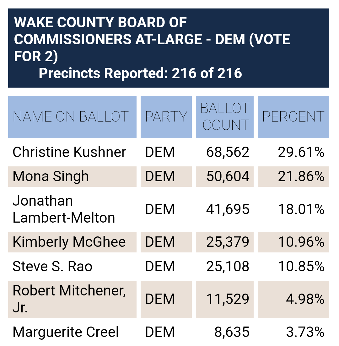 Yes, but obviously in Wake County the Democratic primary is the de facto general election. Congratulations to Christine Kushner and Mona Singh, who are effectively the new county commissioners-elect.