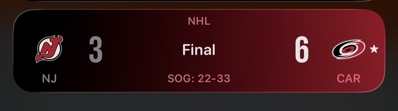 Canes scored first and each goal was matched by the Devils until 3–3, they went empty net we scored and then followed up with two more. Great way to start the season!