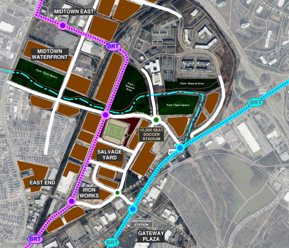 Bringing this thread full circle… 4,983 posts and 2,702 days later… I still kinda like the idea of a 15,000-seat soccer stadium next to the Iron Works / Salvage Yard area. Served by both BRT Midtown and BRT North routes. Accessible from Beltline, Six Forks Rd, Atlantic Ave, Wake Forest Rd, Capital Blvd. On the greenway. Could be the anchor for several 20-story projects to kickoff (I think I count rumors of 5-6 here?)