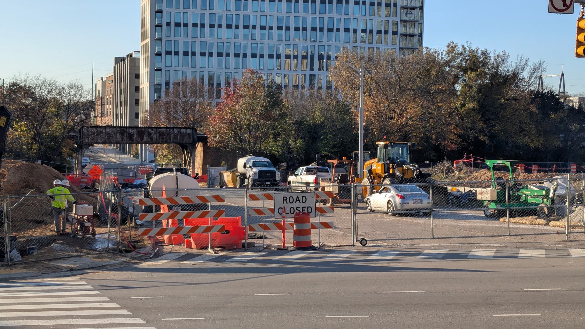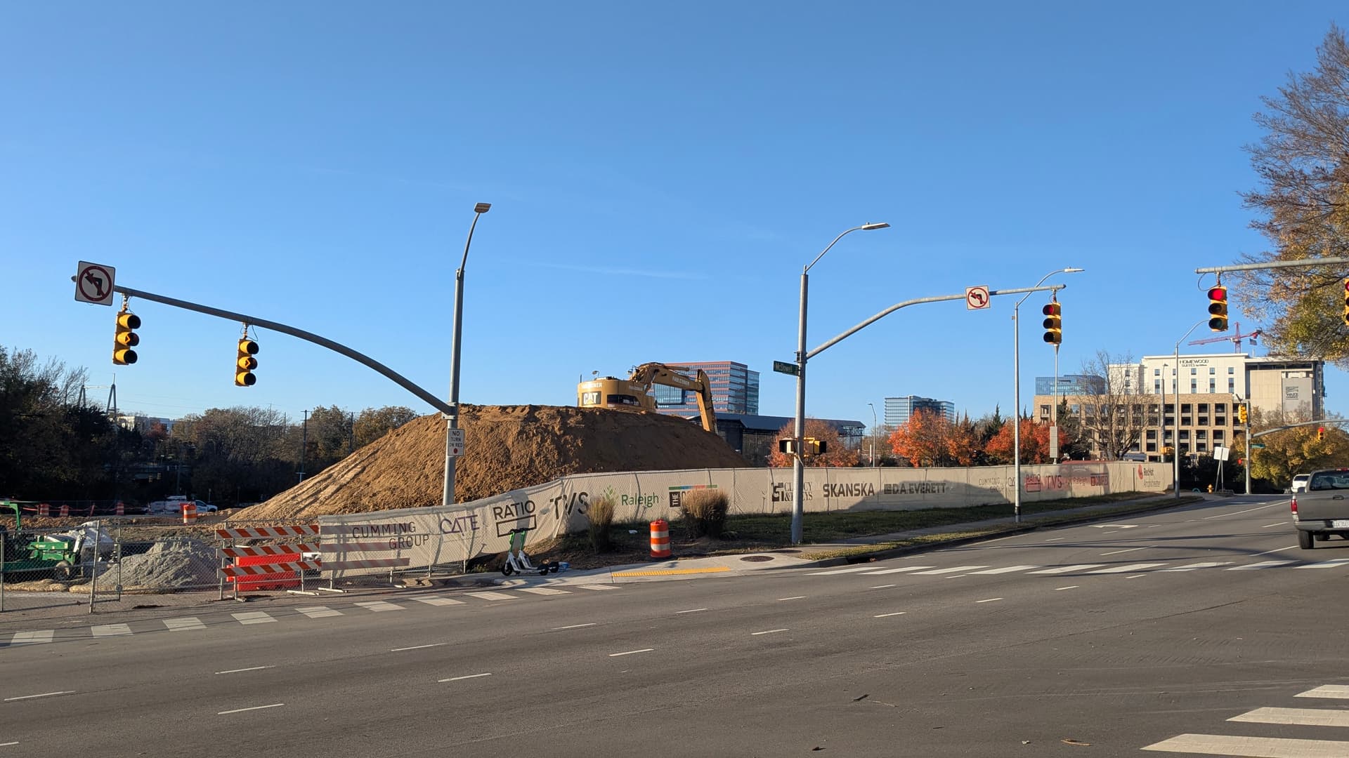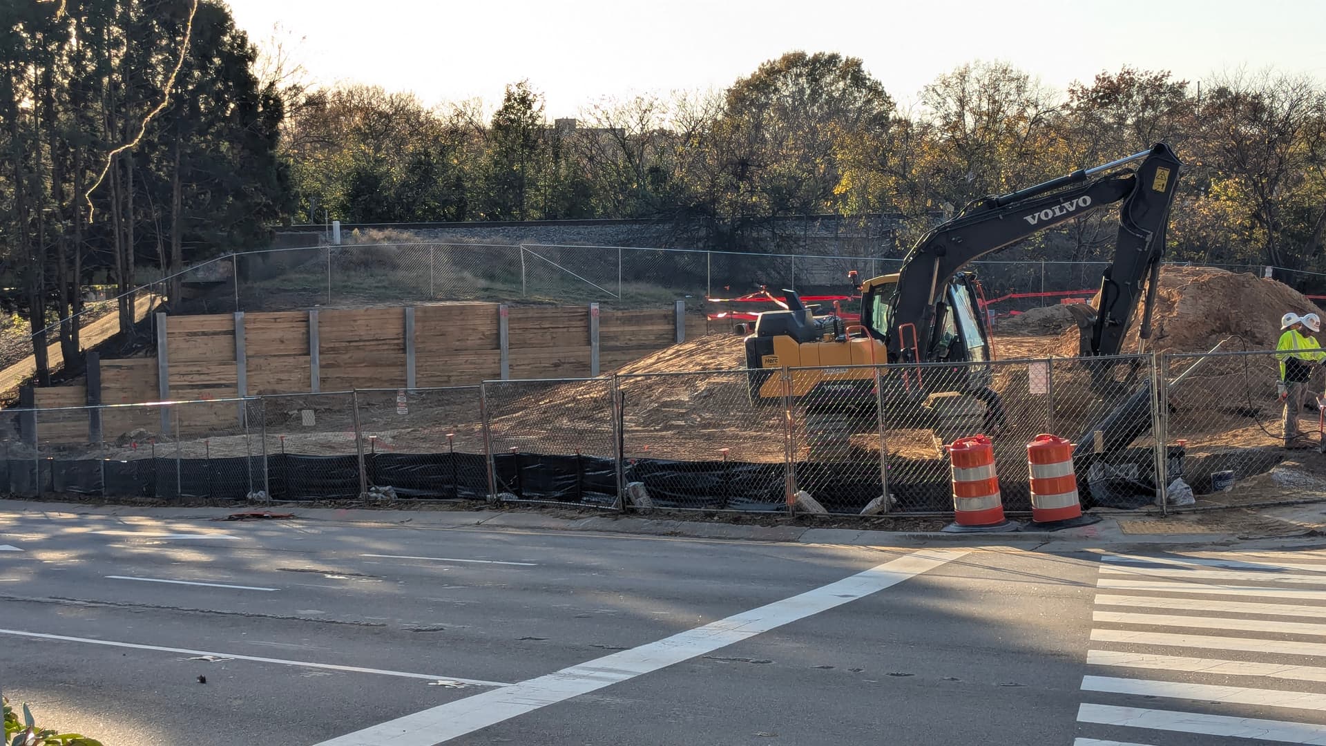 Bad pictures taken at a bad time of day with that setting sun but South Street still looks like a street, dirt has moved, and a retaining wall has been built.