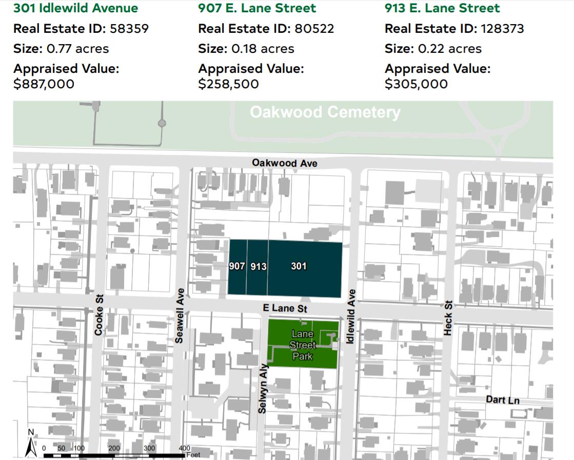 City of Raleigh sent out an RFI for 3 lots at the corner of Lane & Idlewild to sell for $1 to a developer to build affordable housing. The handout indicates the density should be maxed out for the zoning (R-10)… so 11 or 12 units?