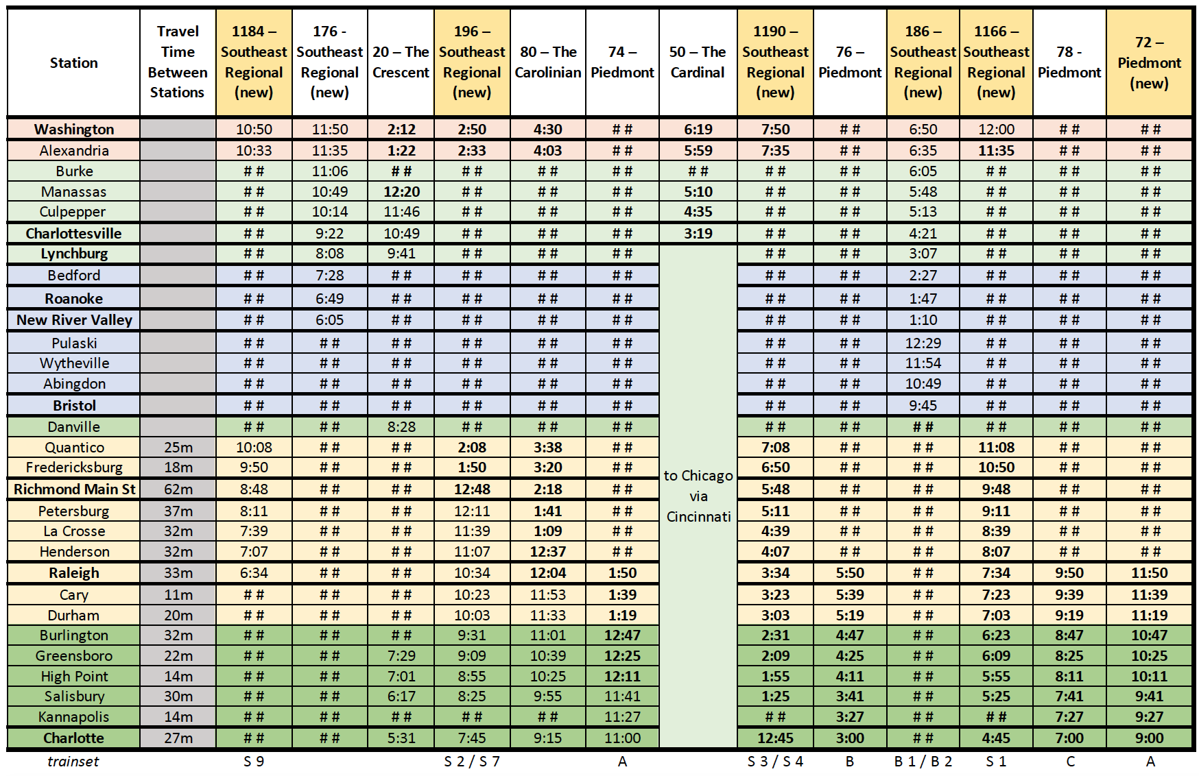 So, whoever runs the RAIL Magazine Twitter account mocked up a schedule for future VA/NC Amtrak service, based on combining VA/NC’s current workplans with current Northeast Corridor slots: