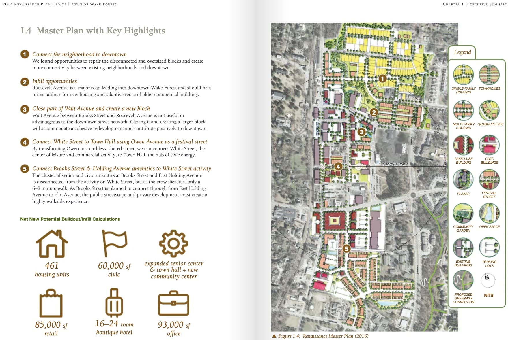 Thw Town of Wake Forest’s 2017 downtown “Renaissance Plan” definitely has that suburban vibe…
