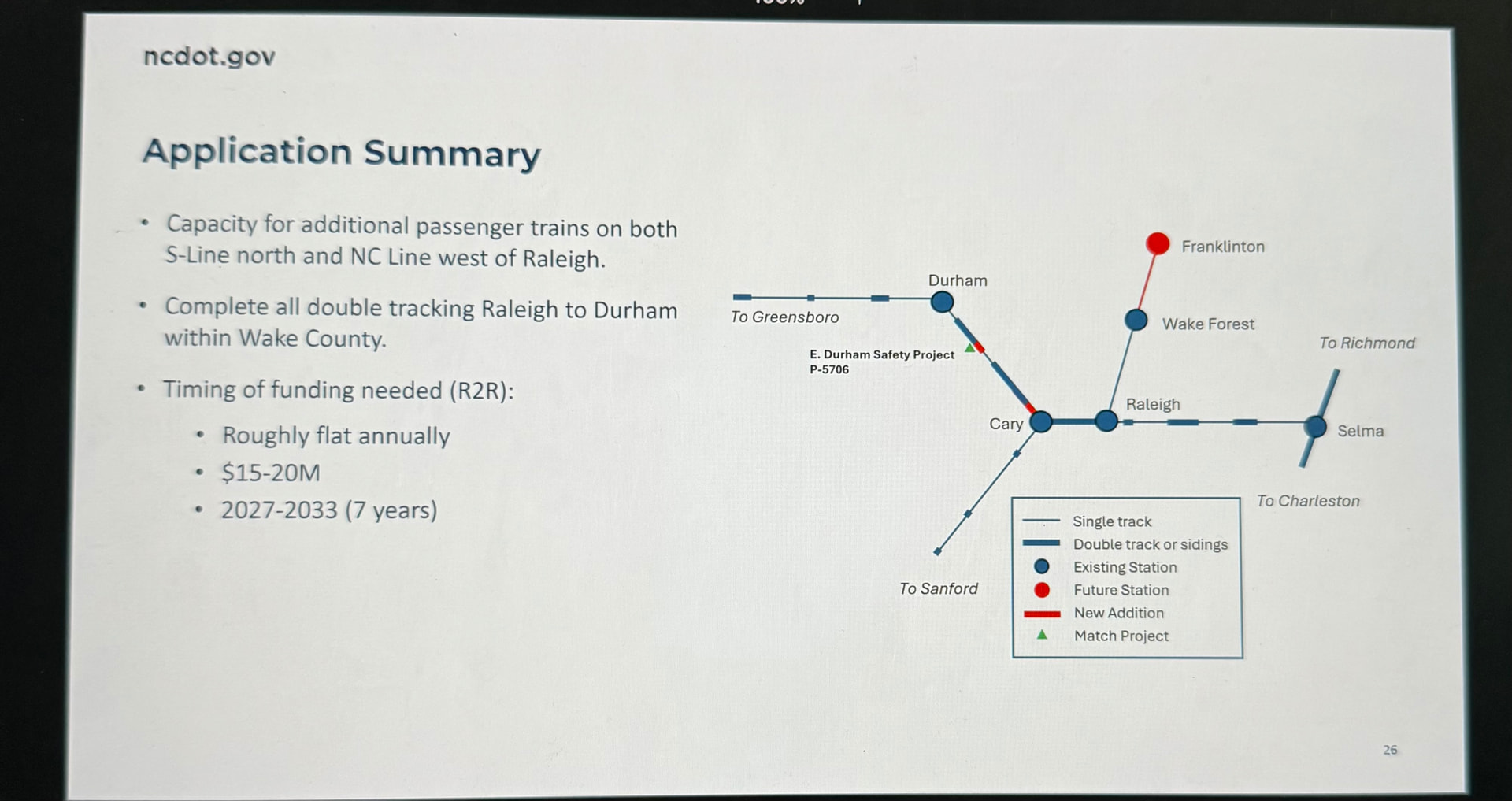 This is related to both this chat and the Commuter rail chat, the N.C. Rail Division is asking TPAC (Wake Transit Board) to recommend the governing boards approve $125 million to go towards a 20% match for S-Line and N.C. Line west of Raleigh two Federal Grant matches.