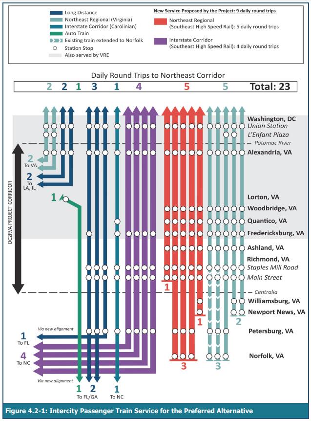 I actually think they plan to keep the Carolinian on the A-Line even after Virginia’s segment is up and running. I think they’re envisioning the future of the Carolinian to be a “local service” of sorts, linking as many North Carolina cities and towns as possible to both each other and the NEC. I’m mostly basing that off of this graphic that I’ve seen several variants of (this one is from the 2019 DC2RVA Tier II EIS). Granted, the Carolinian is our service, not Virginia’s, but it seems like we’re working closely with them on this, so I wouldn’t be surprised if there’s some element of truth to this graphic.