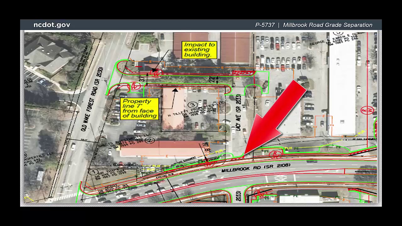 Updated video about the Millbrook Road Grade Separation project. Right of way phase starts this year, construction to finish in 2026. Grade separations are proposed at Durant Road (S.R. 2006), Gresham Lake Road (S.R. 2013), Millbrook Road (S.R. 2108), New Hope Church Road (S.R. 2034), and Wolfpack Lane.