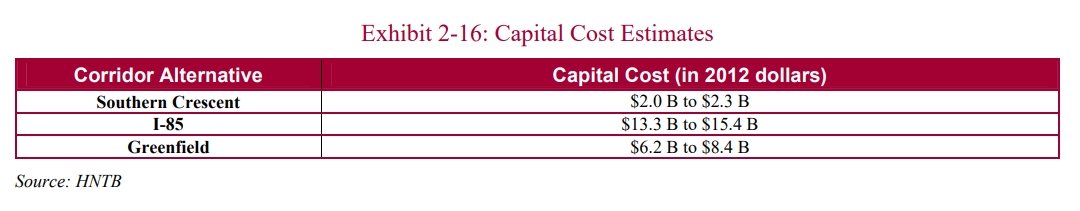 If you believe the numbers @colbyjd3 posted earlier, that’s not necessarily true; the I-85 corridor is still more expensive to build. Besides, pre-construction costs should be similar for all corridors since all of them have to go through the same environmental/engineering studies anyways, and there’s no reason one would take longer to complete than the other.