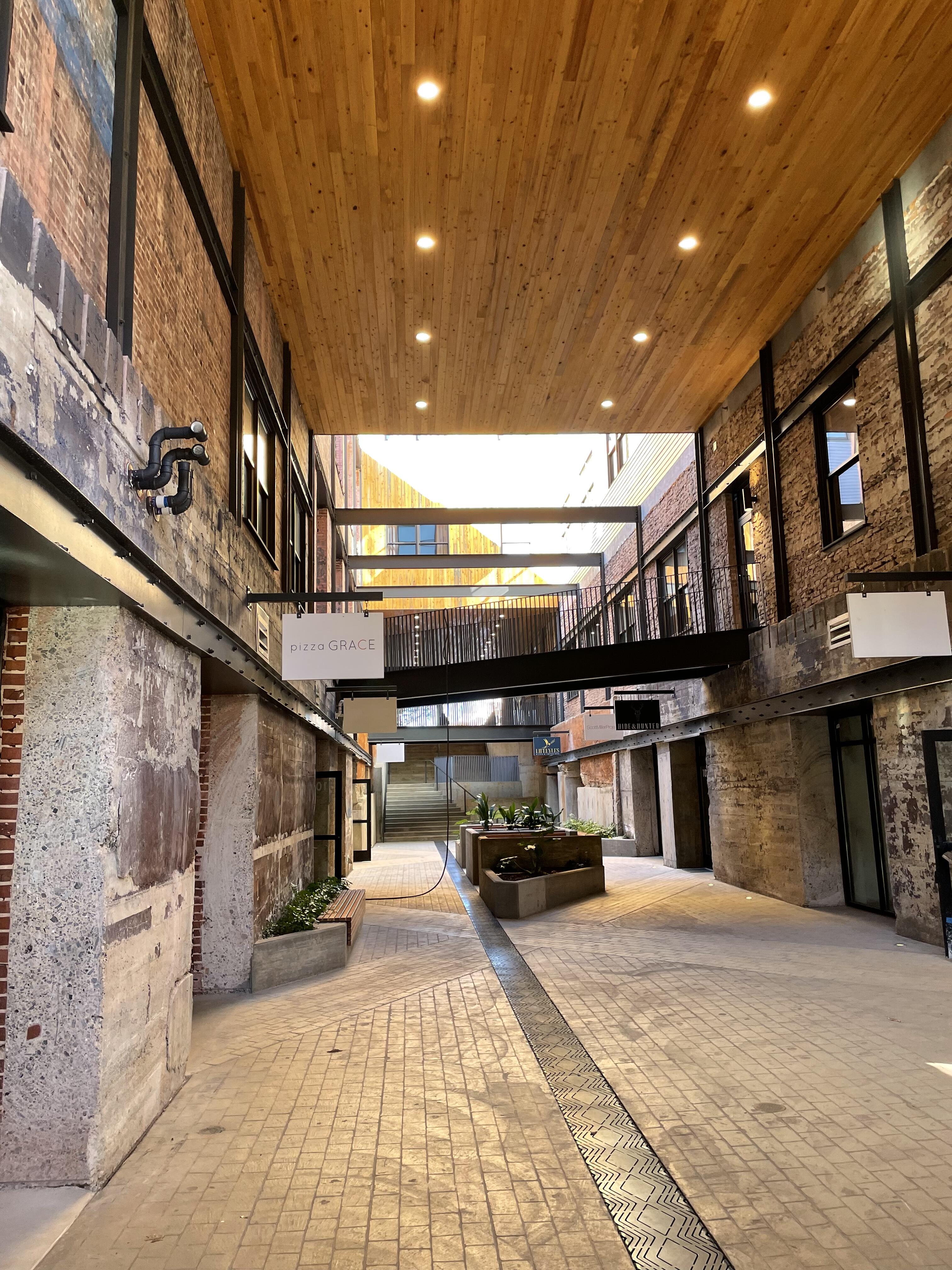 Back in Birmingham for the holidays. Not sure where in Raleigh this could be replicated, but this historic redevelopment is cool. Redeveloped the older brick buildings, built modern condos on top, and then built a public cut through walkway to connect two popular streets with restaurants / businesses in the middle. A nice example of keeping the old, but repurposing it.