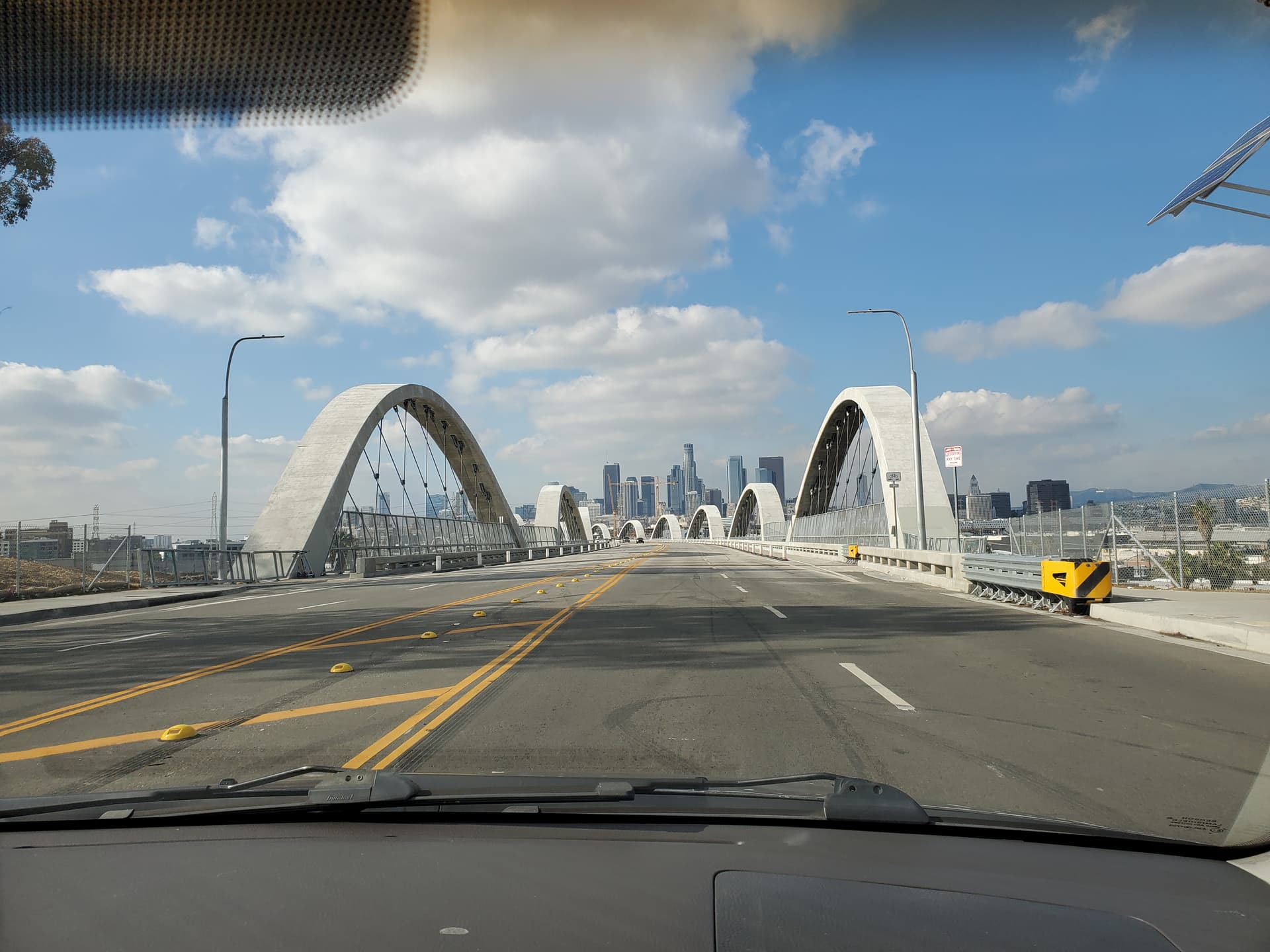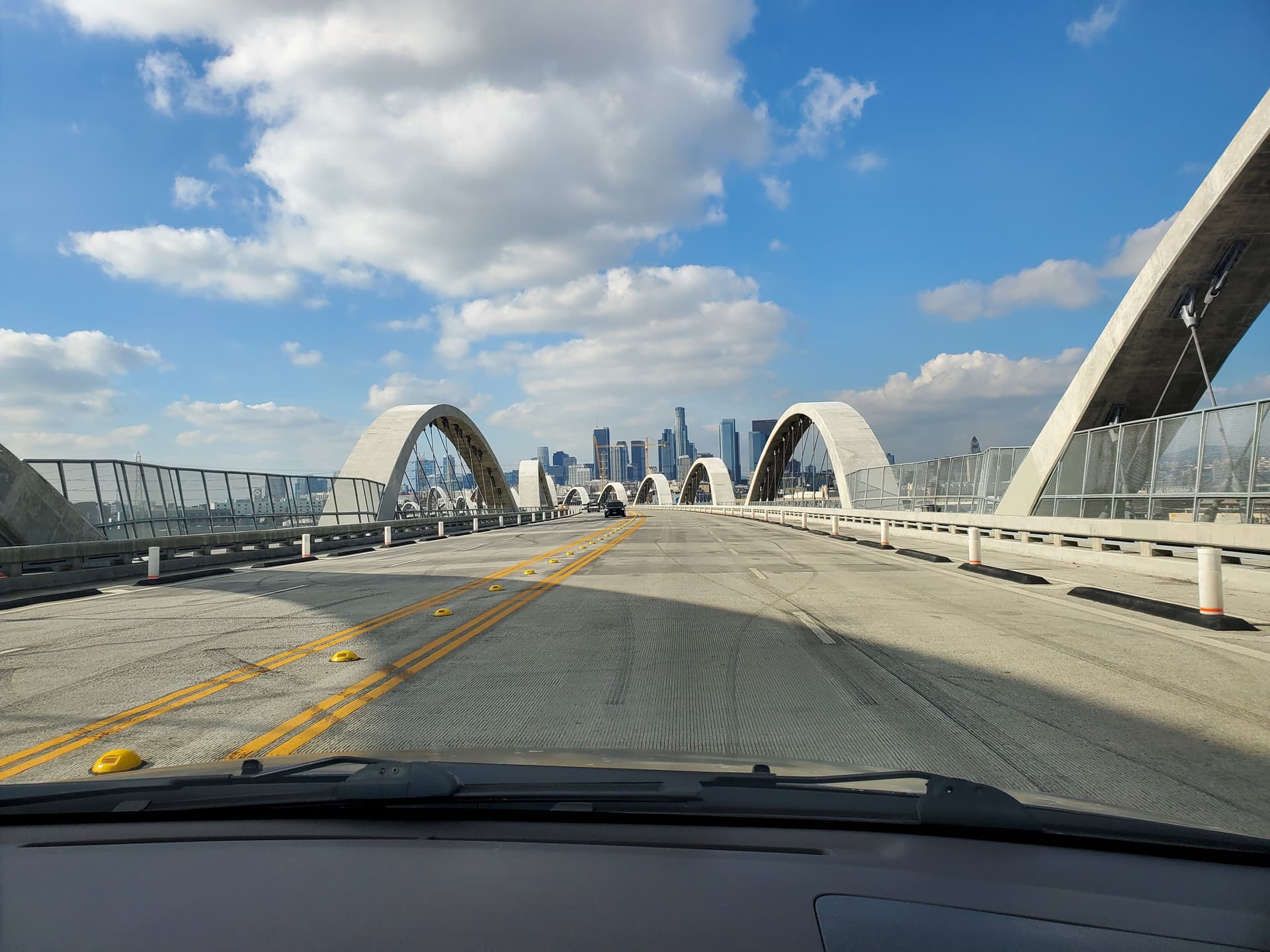 LA urbanists are pissed about this thing, namely because they could have built the bike separation into the bridge itself (behind the concrete barriers), but instead it looks like an afterthought. Also, as I’m sure you can tell, it quickly became a hotspot for street racing, burnouts, and so on.