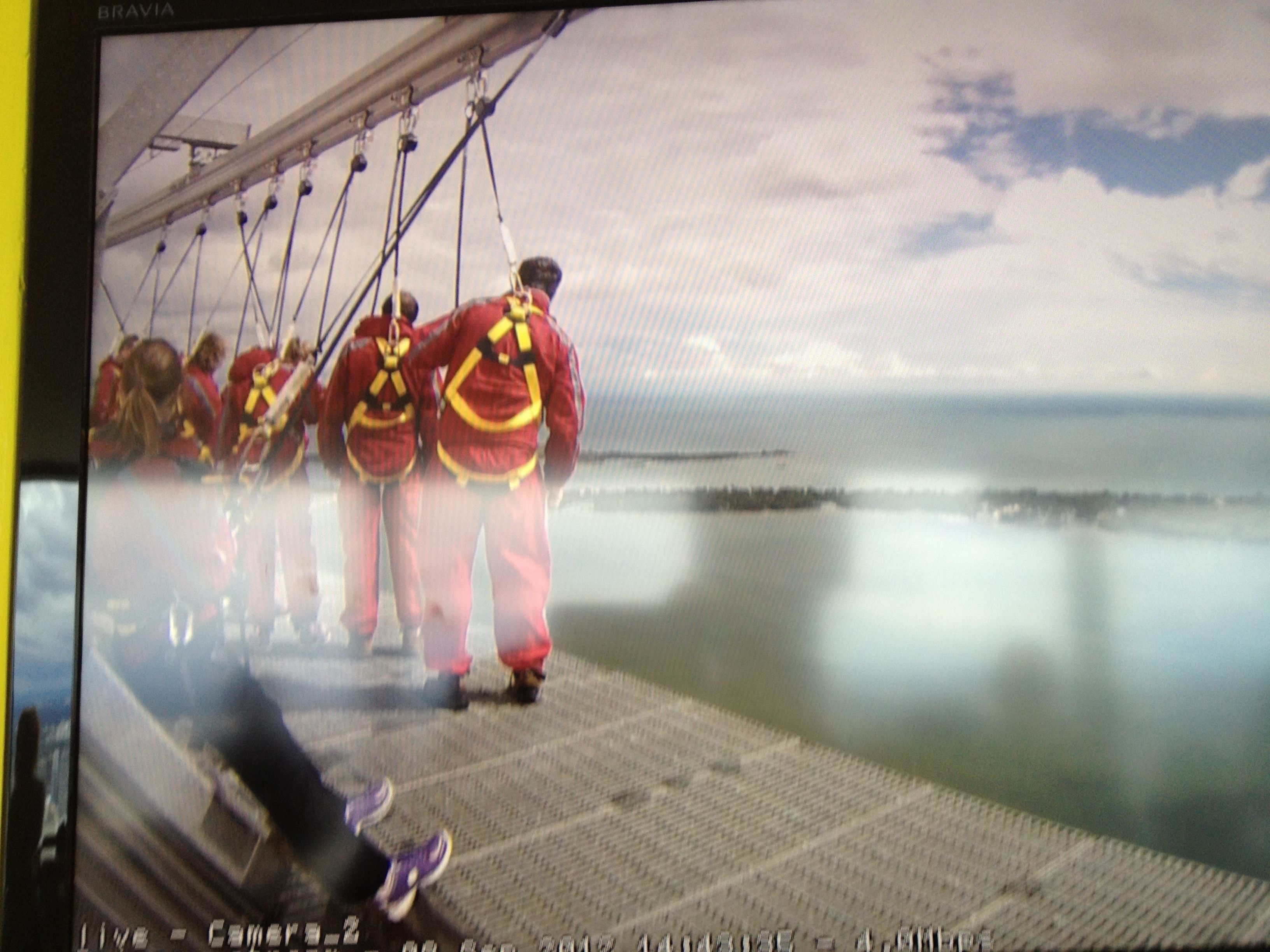 One by one we went out on to the ledge. As we were locked into a group session, there was no way to chicken out unless you were the rearmost participant. But, while we were on the outer track our group leader was on the inner parallel track. He had to learn all of our first names, and would call out to each of us during the different challenges on the walk. All the while, he had a POV camera on his helmet.