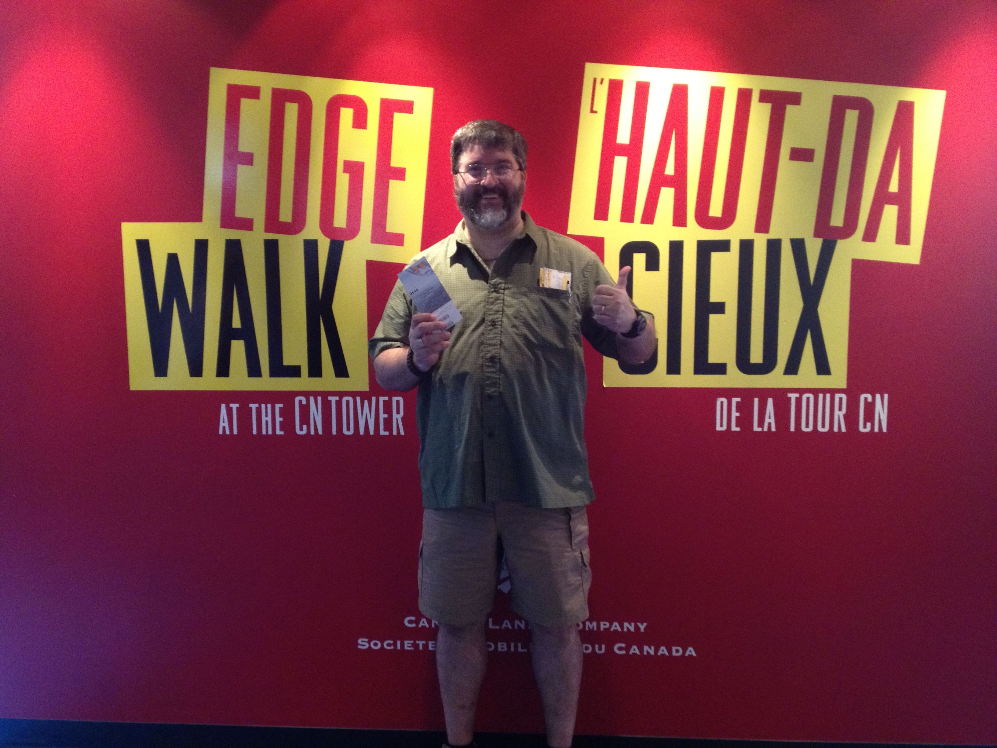 So, we ditch our luggage in the rental garage and hustle down Front Street to CN Tower. The Edge Walk requires reservations for a group of 8 to go topside, and there was a secure check-in process (along with the usual indemnity waiver signing). It was truly like going through an airport, because once you’re inside the secure zone, you can’t go back outside.