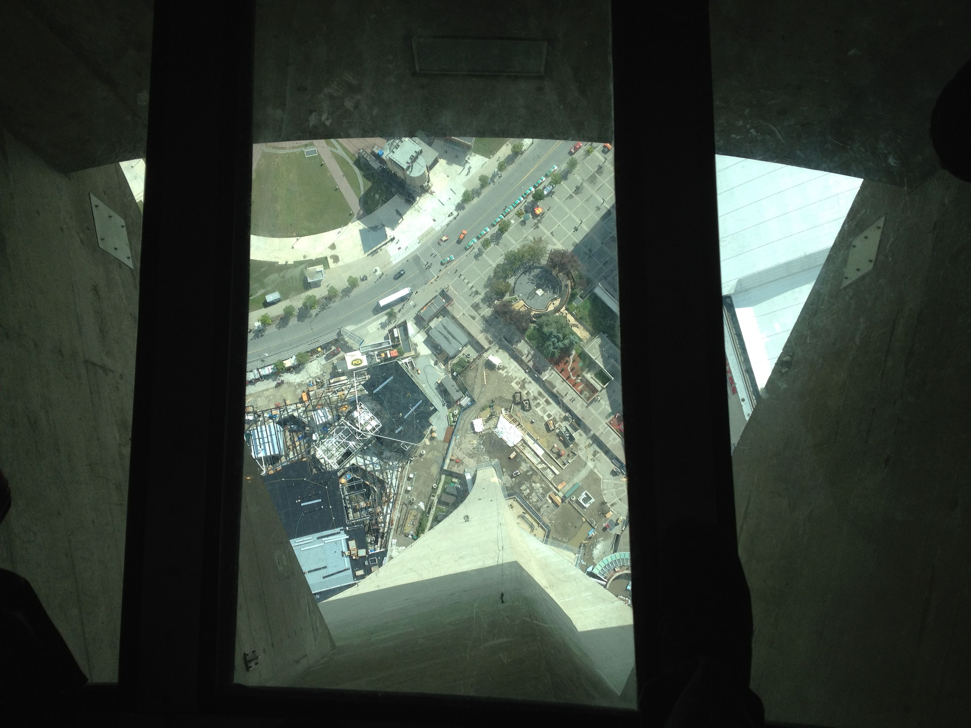 Once done, we moved another quarter turn around the tower. By this time, the next group was coming up to do their ‘Toes over Toronto.’ We did some photo ops for our guide, some lean outs, whatever just to kill some time. We were over Rogers Centre by this point, but couldn’t watch the game as they had closed the dome.