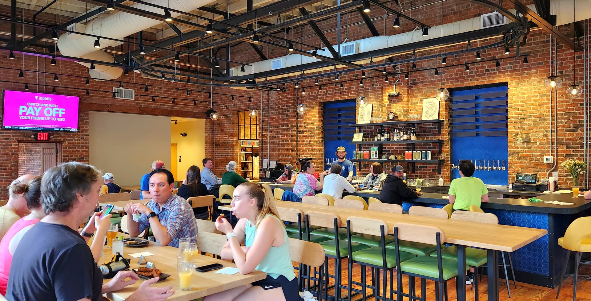 New brewery called Atomic Clock has opened in a nicely restored old brick building with original floors, ceilings, and windows.