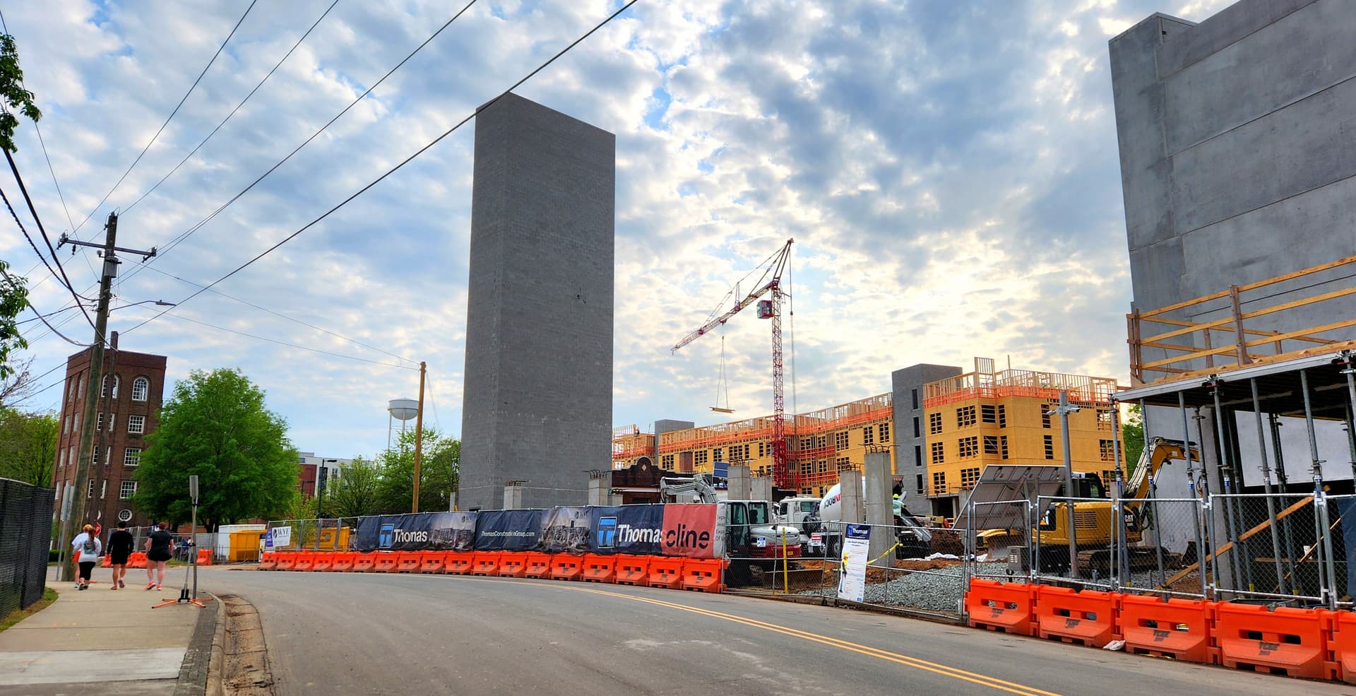 We hauled the Bricks for the Geer House Apartments (The blue and white boxes). You’re not kidding about the density, it’s tighter than a Tick’s ass down there. It took me several visits just to figure out the logistics of navigating a tractor trailer into the site. But I do feel like this area is losing some of the character before all the apartments. You could see down the hill from Motorco to Kings, but now it’s all apartments.