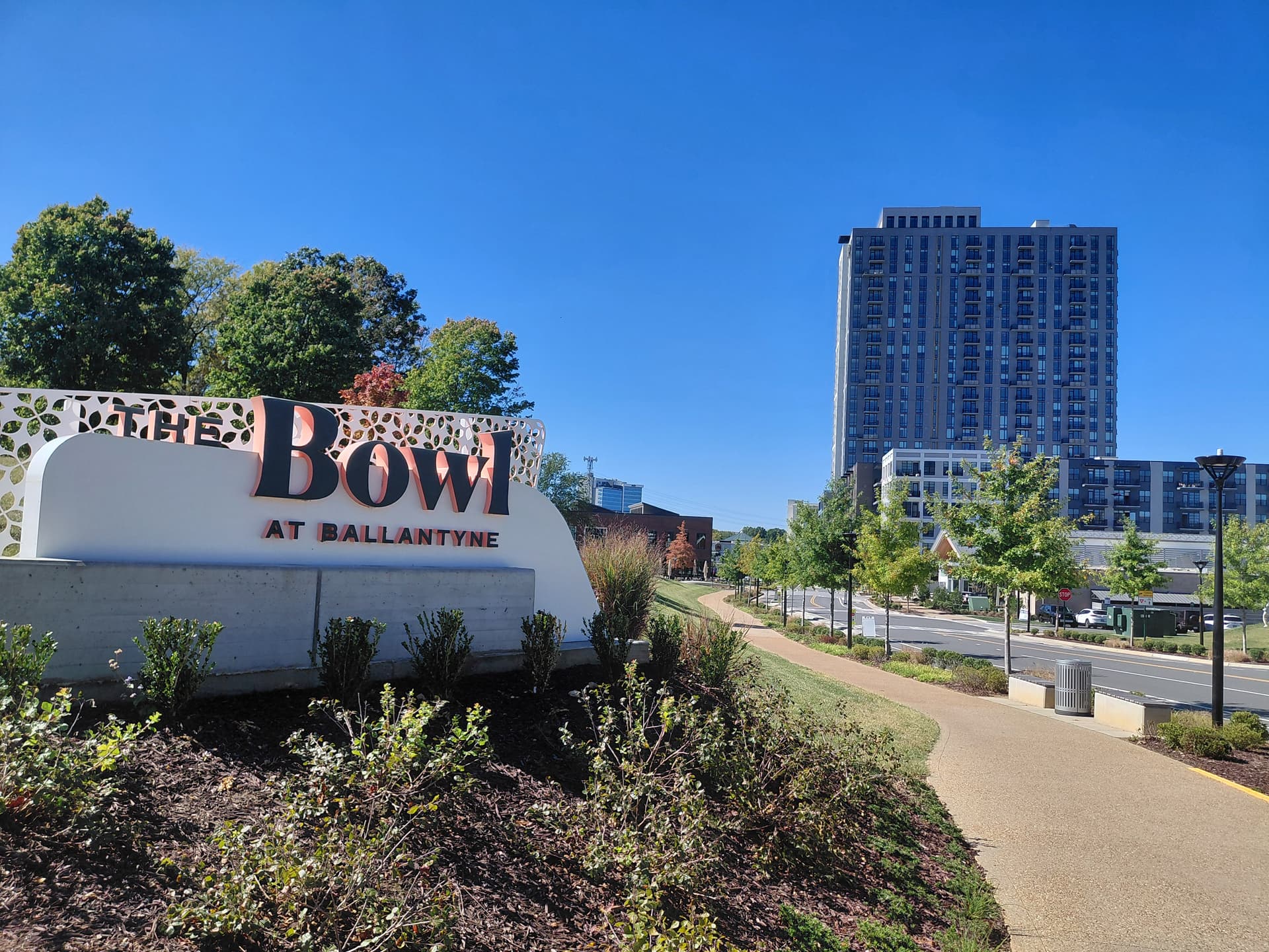 Here is a part of so called “trashy” Charlotte that is not SouthPark called Ballantyne. Ballantyne has 4 million sq ft of office space, a country club by the same name, 4 hotels, our first Wegmans now under construction and the new Ballantyne Bowl anchored by a 26 story apartment tower called Oro, lots of restaurants and an Old Meck Brewery. Take I-485 to US 521 exit 61 for reference. Took these a few weeks ago. Anytime anyone wants a tour of the Queen City let me know in advance and I can make it happen unless I am up in Raleigh like I will be this weekend.