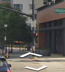 No-right-on-red was installed in 2023 based on the recommendation of the Downtown Raleigh Pedestrian Safety Study, completed in 2020. This was the initial installation: