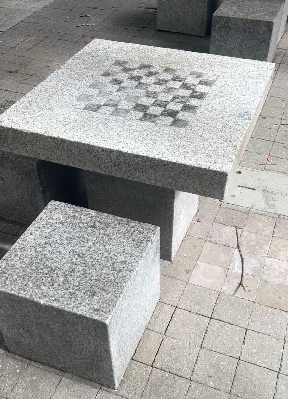 I noticed in the past that those tables were repurposed, but I never knew the story about the tables not even being set up properly for chess! What about them makes it impossible to play? Are they not 8x8?