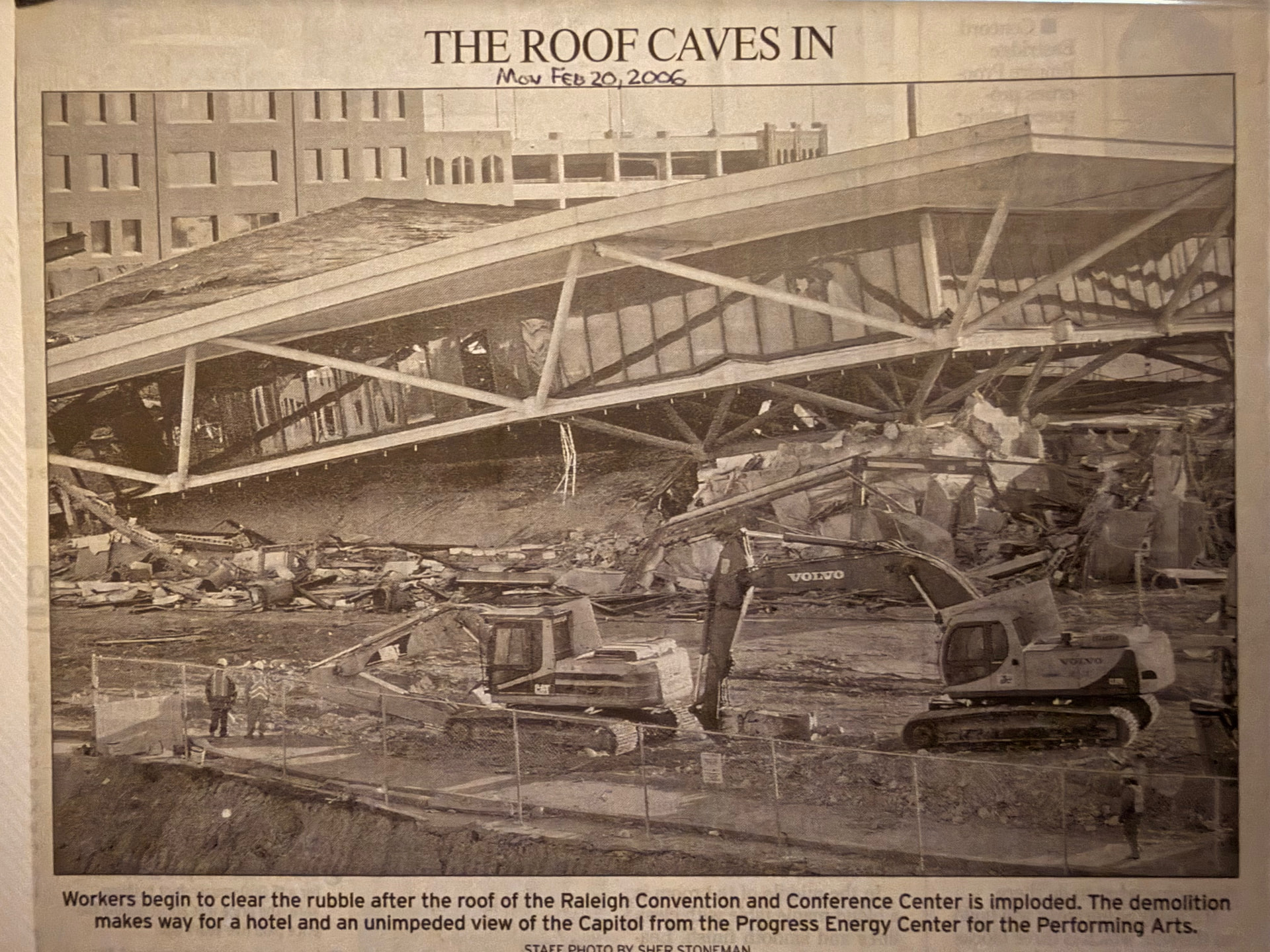 This is a picture from the N&O from early 2006 after the old civic and convention center was imploded.